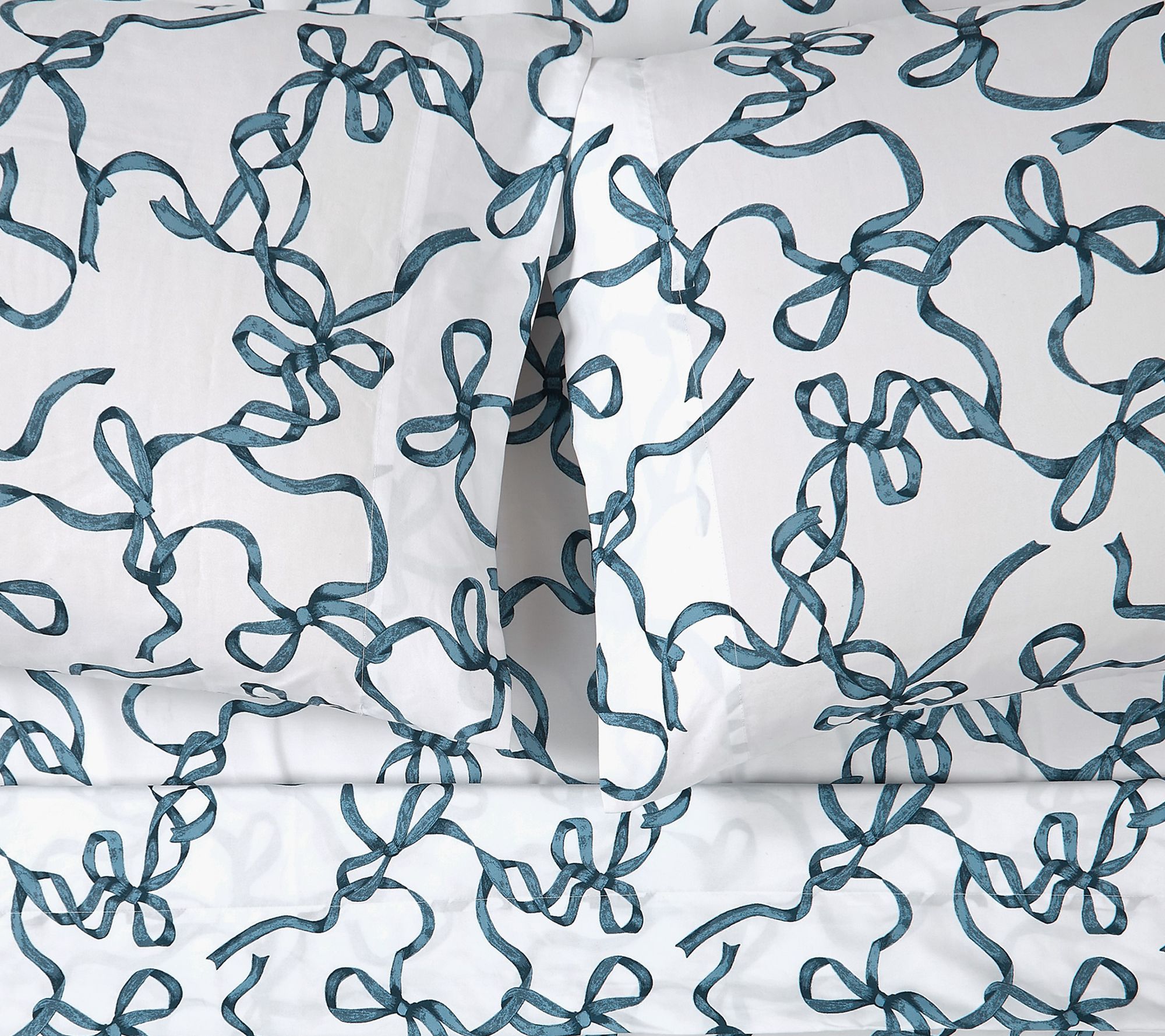 Bring an extra touch of charm to your bedroom with the Printed Bow Twin XL sheet set. Styled with playful bows that create a graceful accent, these sheets invite you to relax after a long day or enjoy a leisurely morning. Crafted for softness, they add whimsy and comfort to dorm rooms or cozy corners. From Truly Soft.