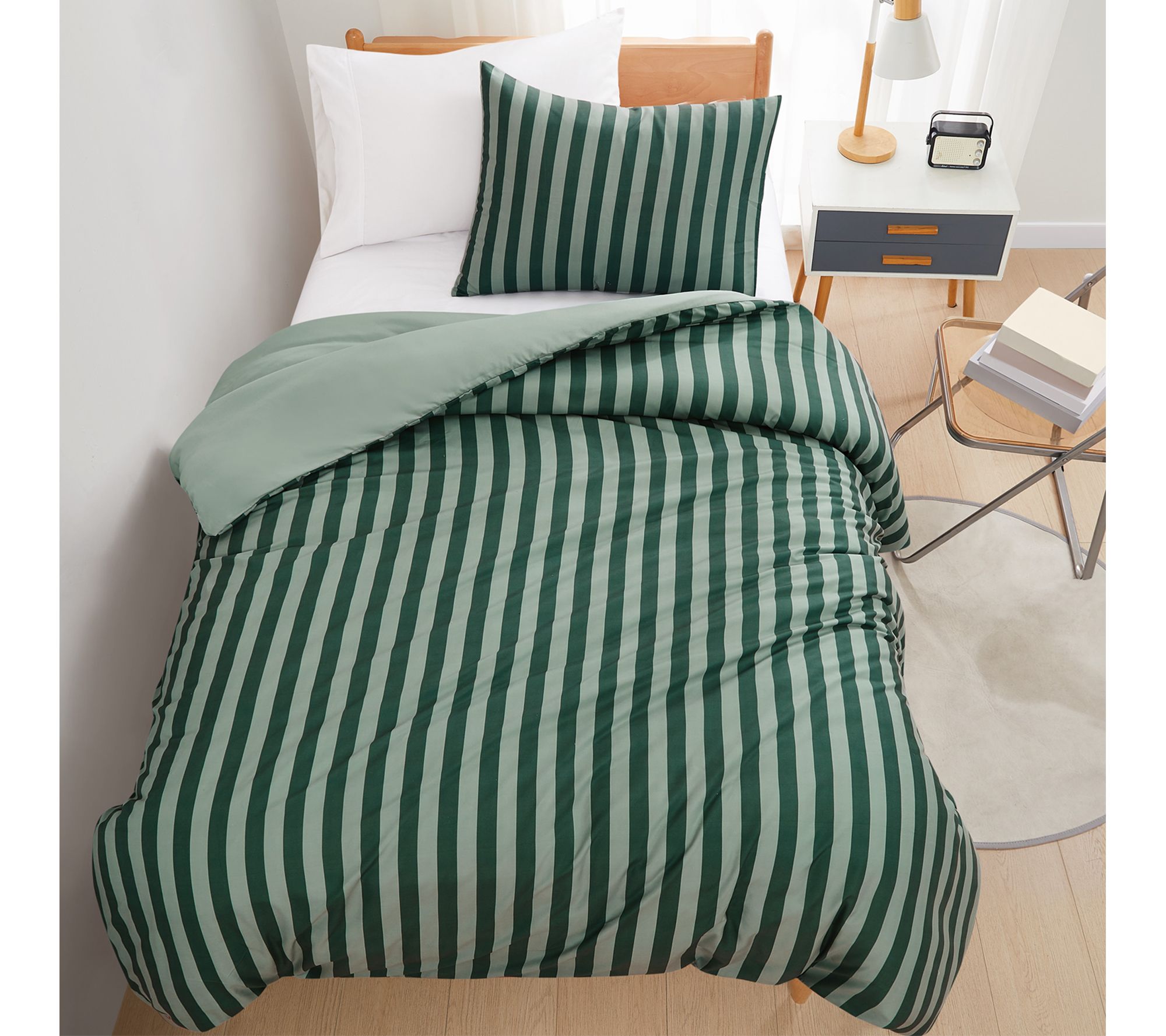 Curl up in cozy comfort and give your bedroom a quick update with this twin XL comforter set. Bold stripes add modern style, while the soft touch fabric creates an inviting space to relax after a busy day or binge-watch your favorite show. From Truly Soft.