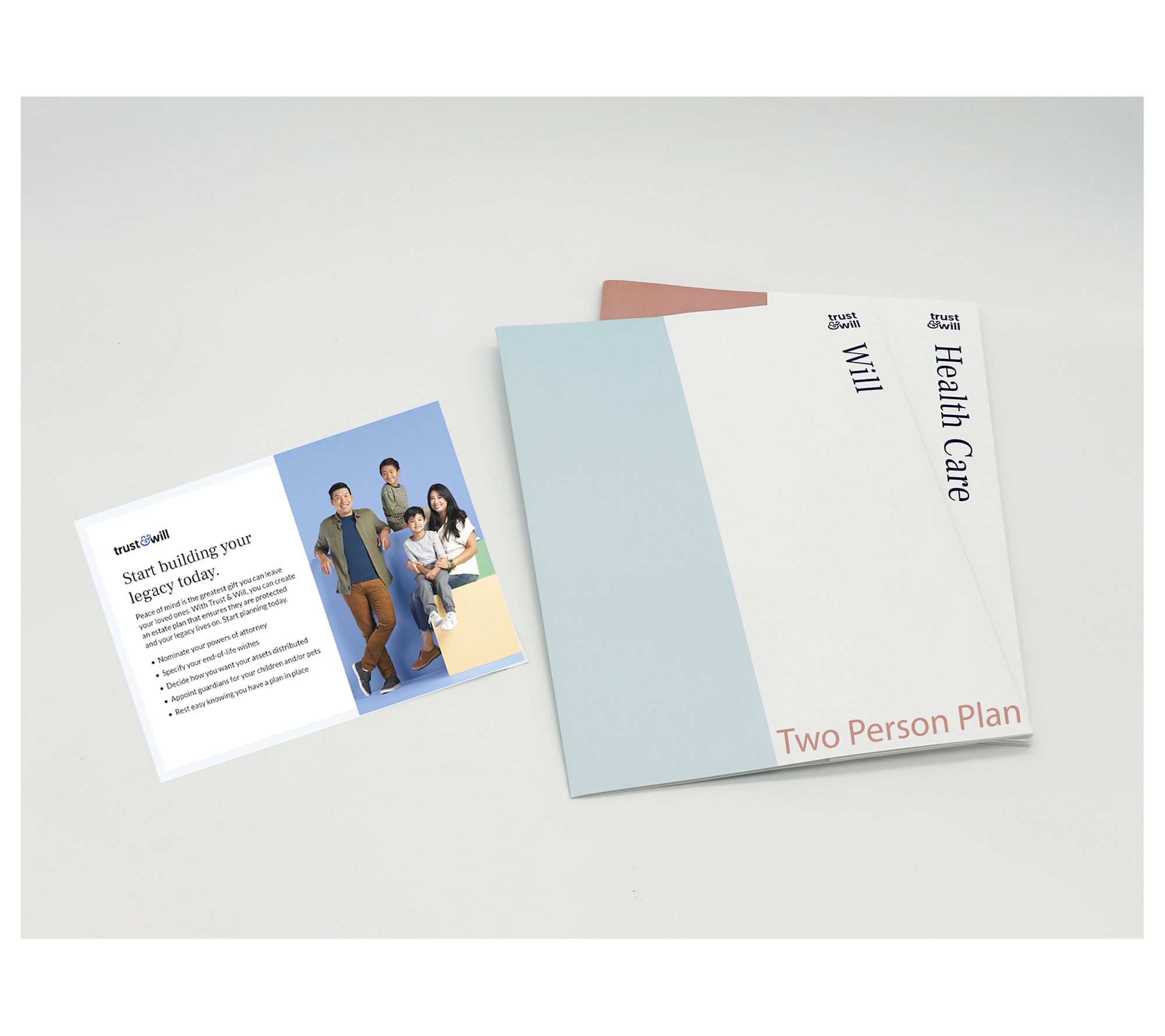 Includes will-based estate plan for couple/two people with Last Will & Testament, HIPAA Authorization, Living Will (Medical Directive), and Power of Attorney; plus 1-year subscription to the Trust & Will online portal