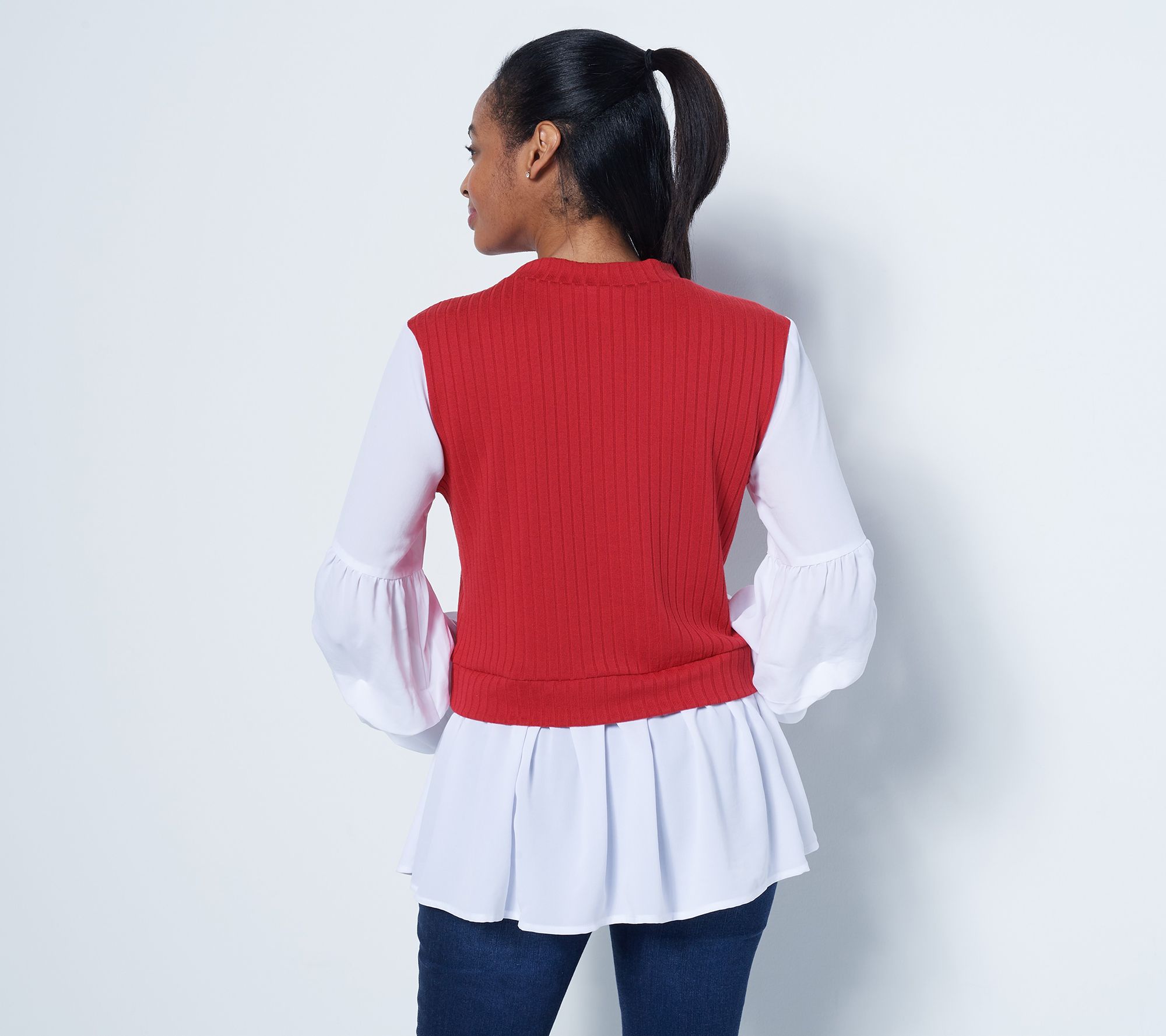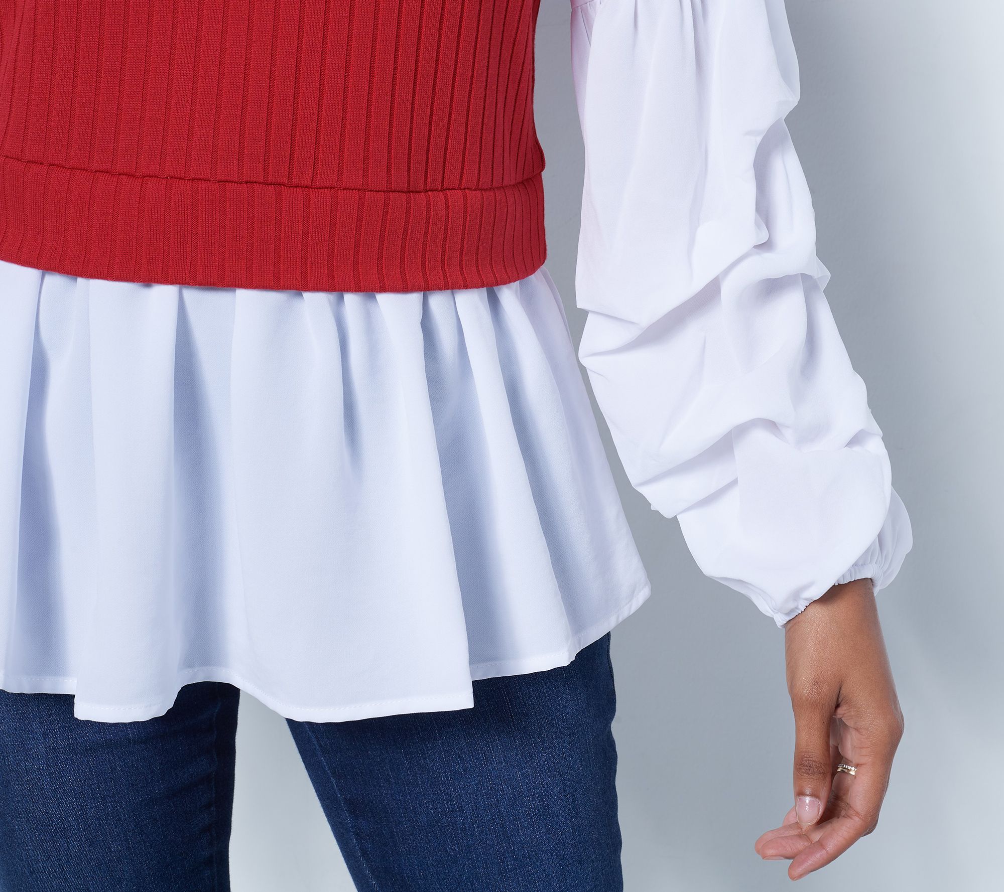 You'll be thrilled with this lovely layered look. Voluminous sleeves and a frilly bottom make all the difference. From Truth + Style.