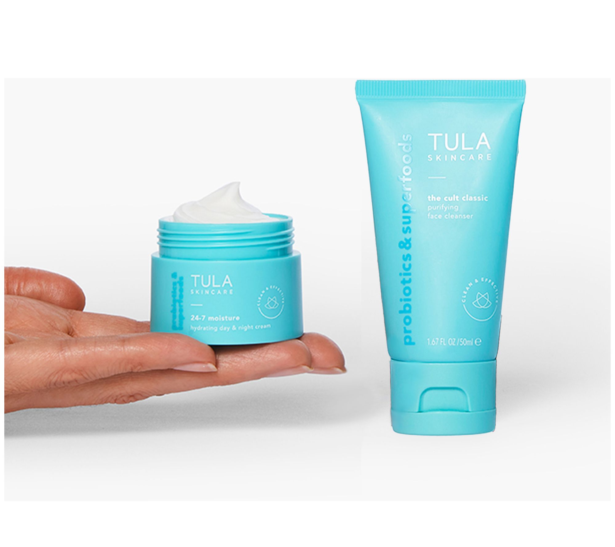 TULA Better Together Cleansing & Hydrating Travel collection includes The Cult Classic Purifying Face Cleanser and 24-7 Moisture Hydrating Day & Night Cream.