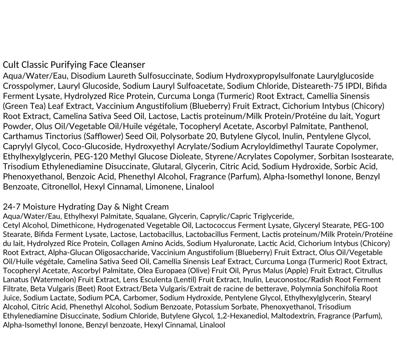The Cult Classic Purifying Face Cleanser helps remove dirt, impurities, and makeup without over-drying, while the 24-7 Moisture Hydrating Day & Night Cream deeply hydrates and revives the appearance of dull and tired skin.