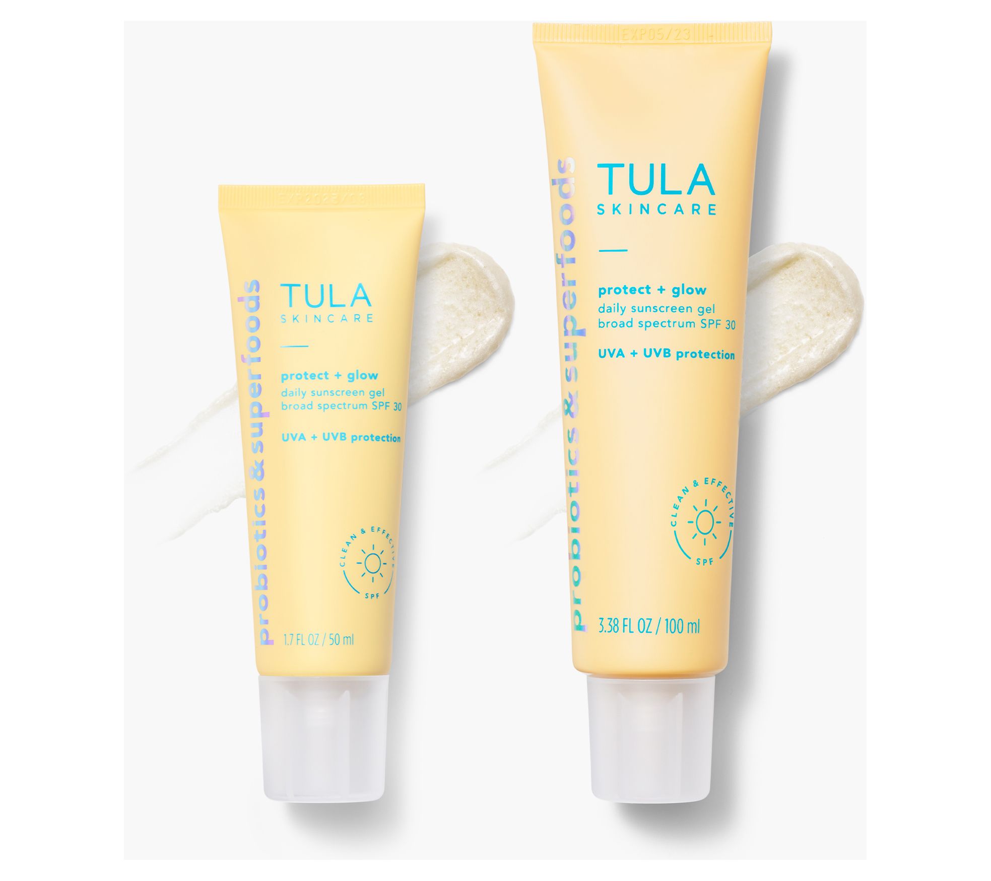 It's not just sunscreen, it's skin care. TULA Protect + Glow Daily Suncreen Gel broad spectrum sunscreen provides daily SPF 30 that helps prevent sun damage which can lead to premature skin aging. This non-greasy and non-comedogenic sunscreen contains exfoliants that help improve the look of skin smoothness. It leaves the appearance of a gorgeous glow that wears well under makeup or on its own.