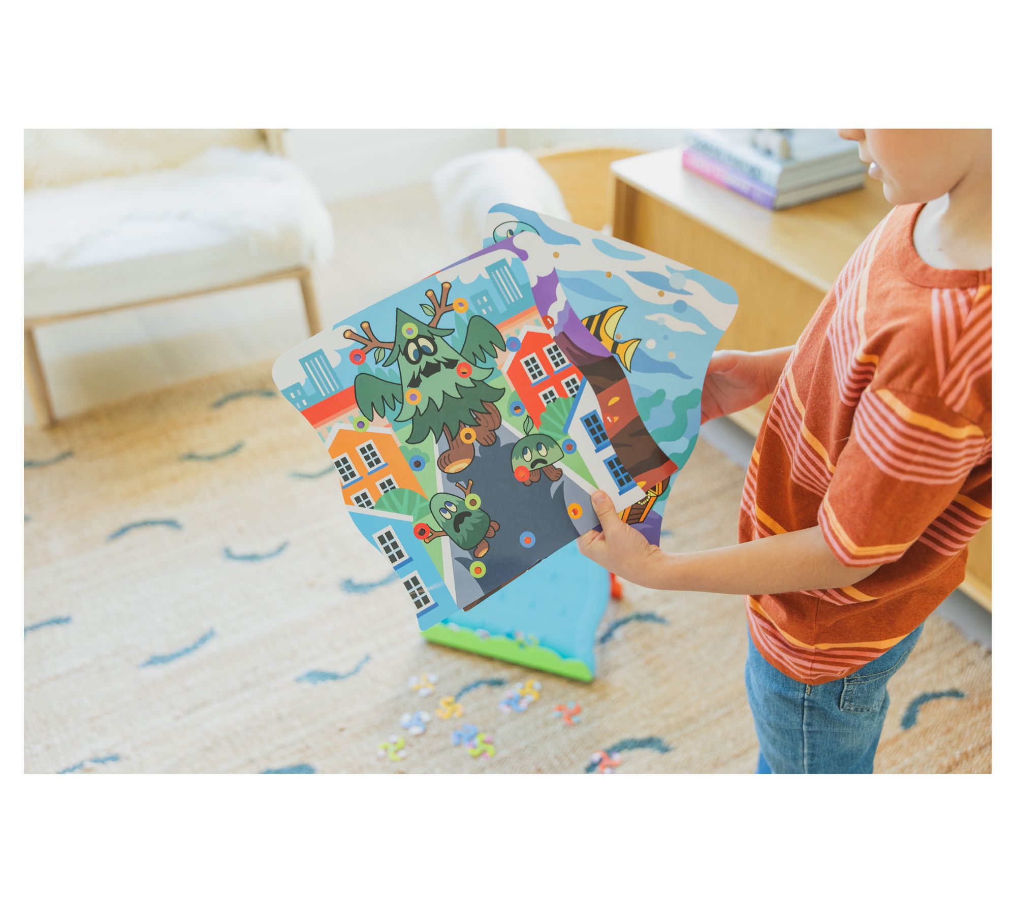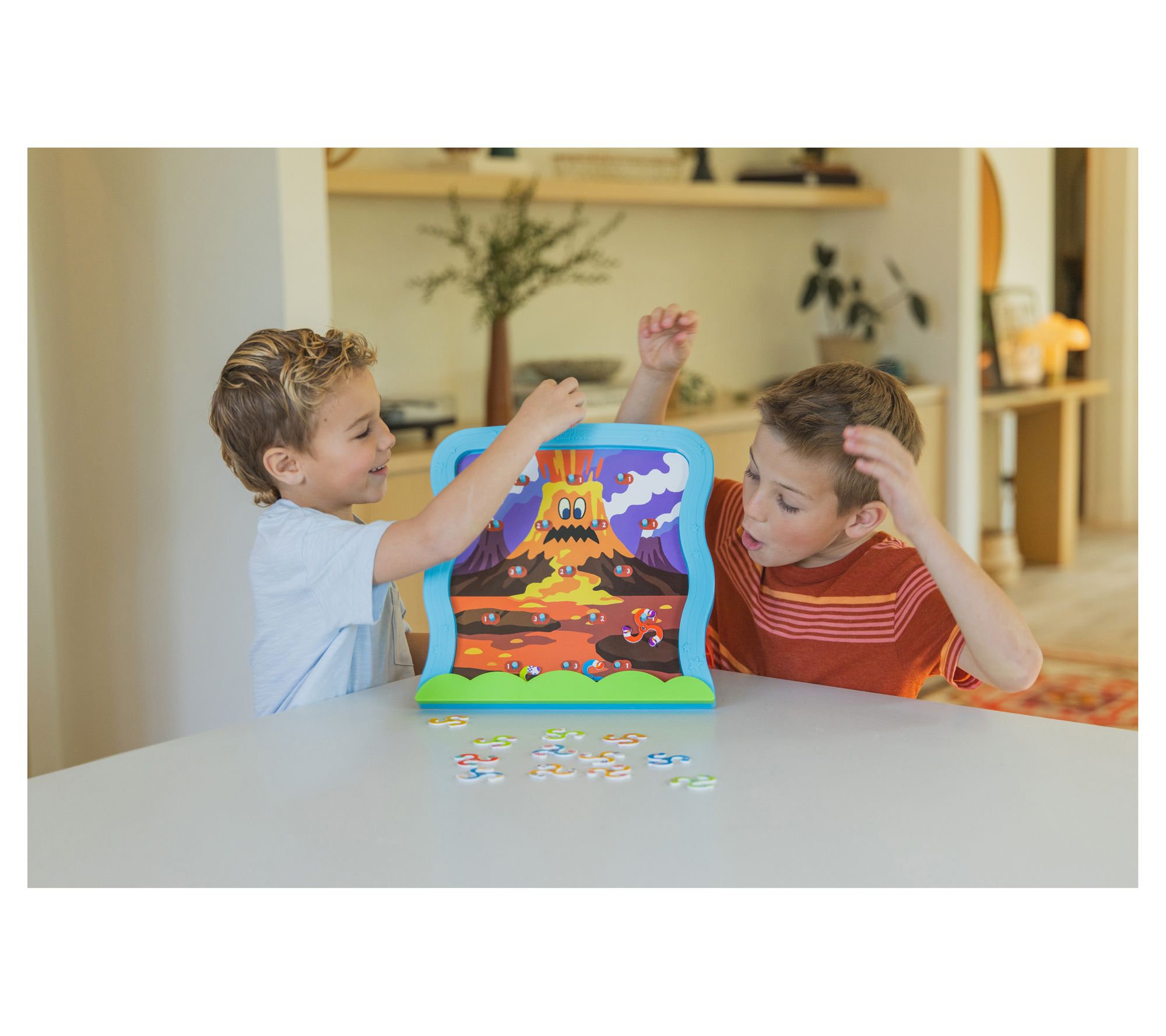 • Includes game board with pegs, three double-sided scene cards, 16 blob player pieces (two sets of eight), and guide
