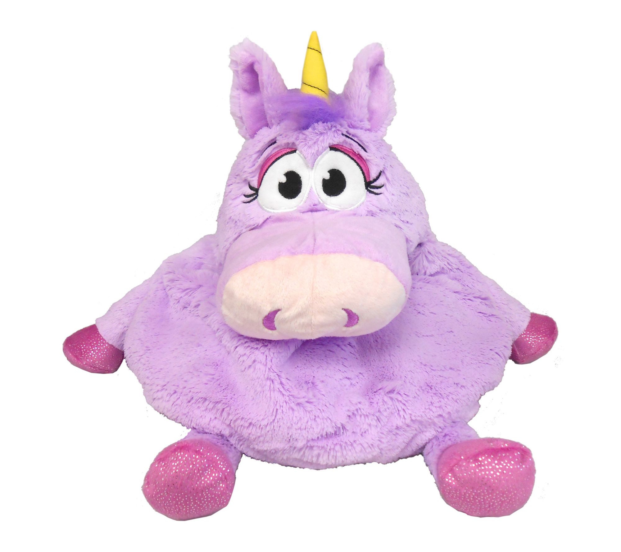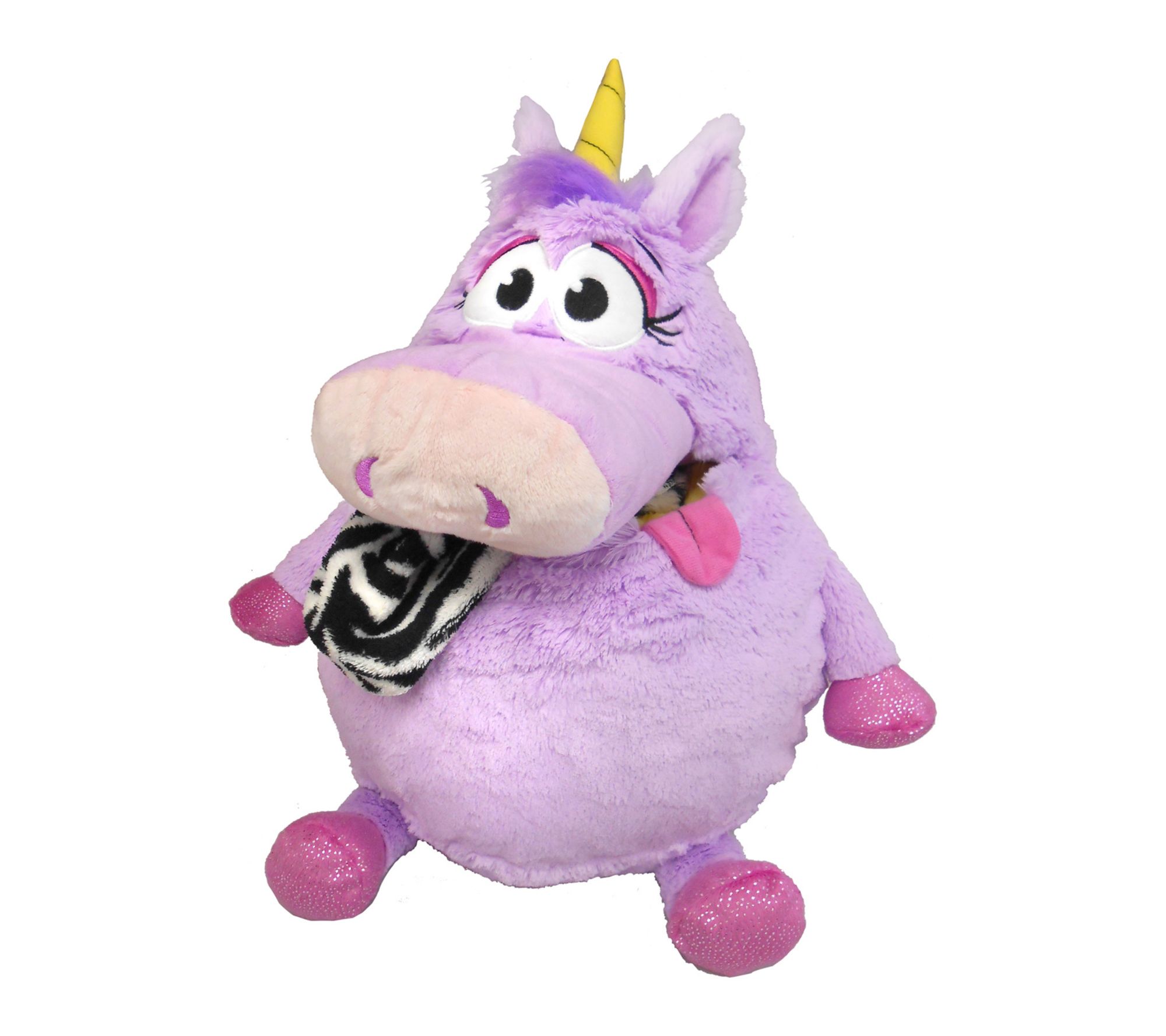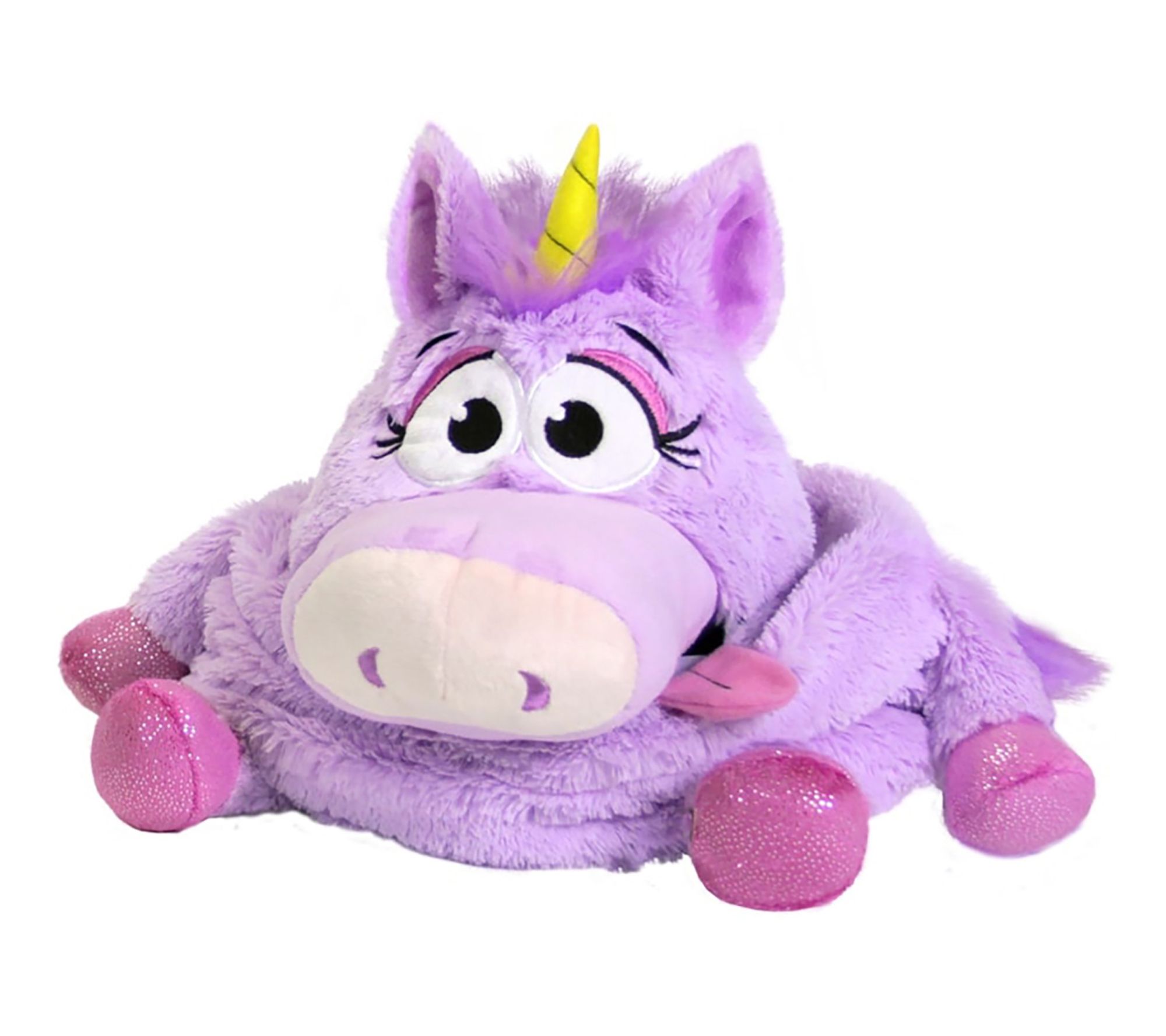 • Plush storage unicorn designed to store toys, clothes, and more inside its stretchy tummy