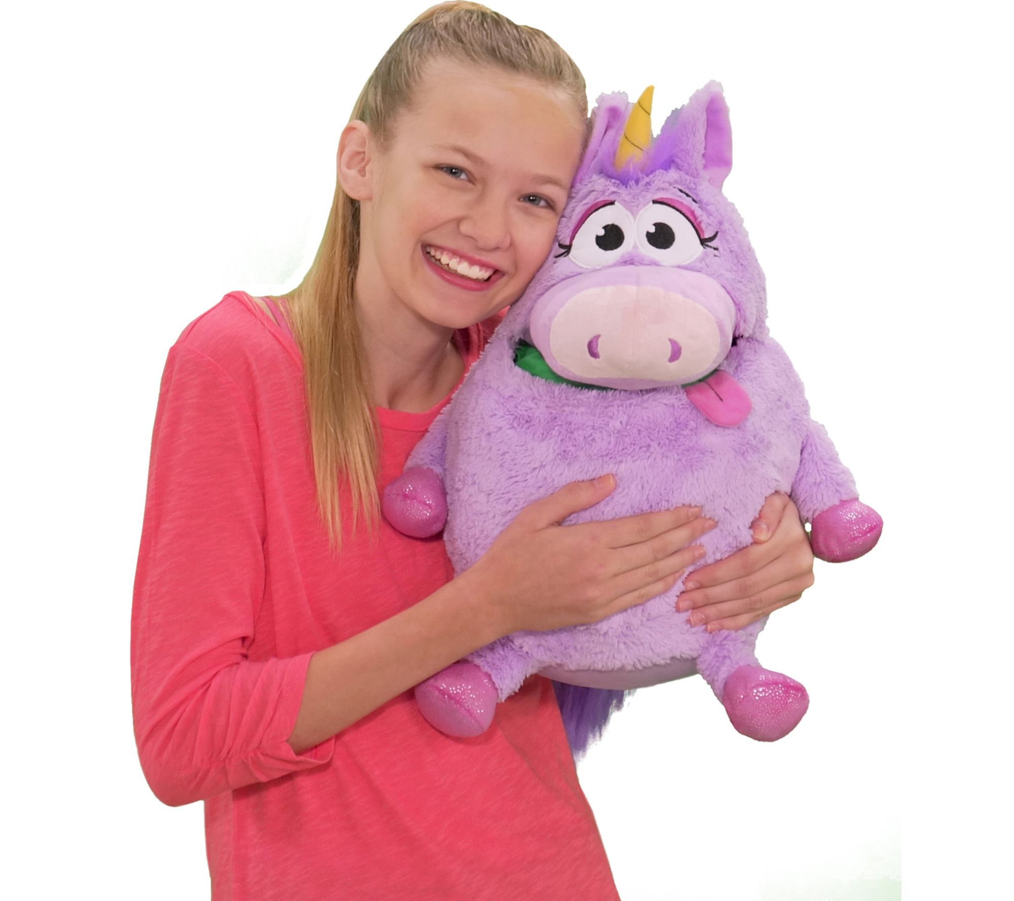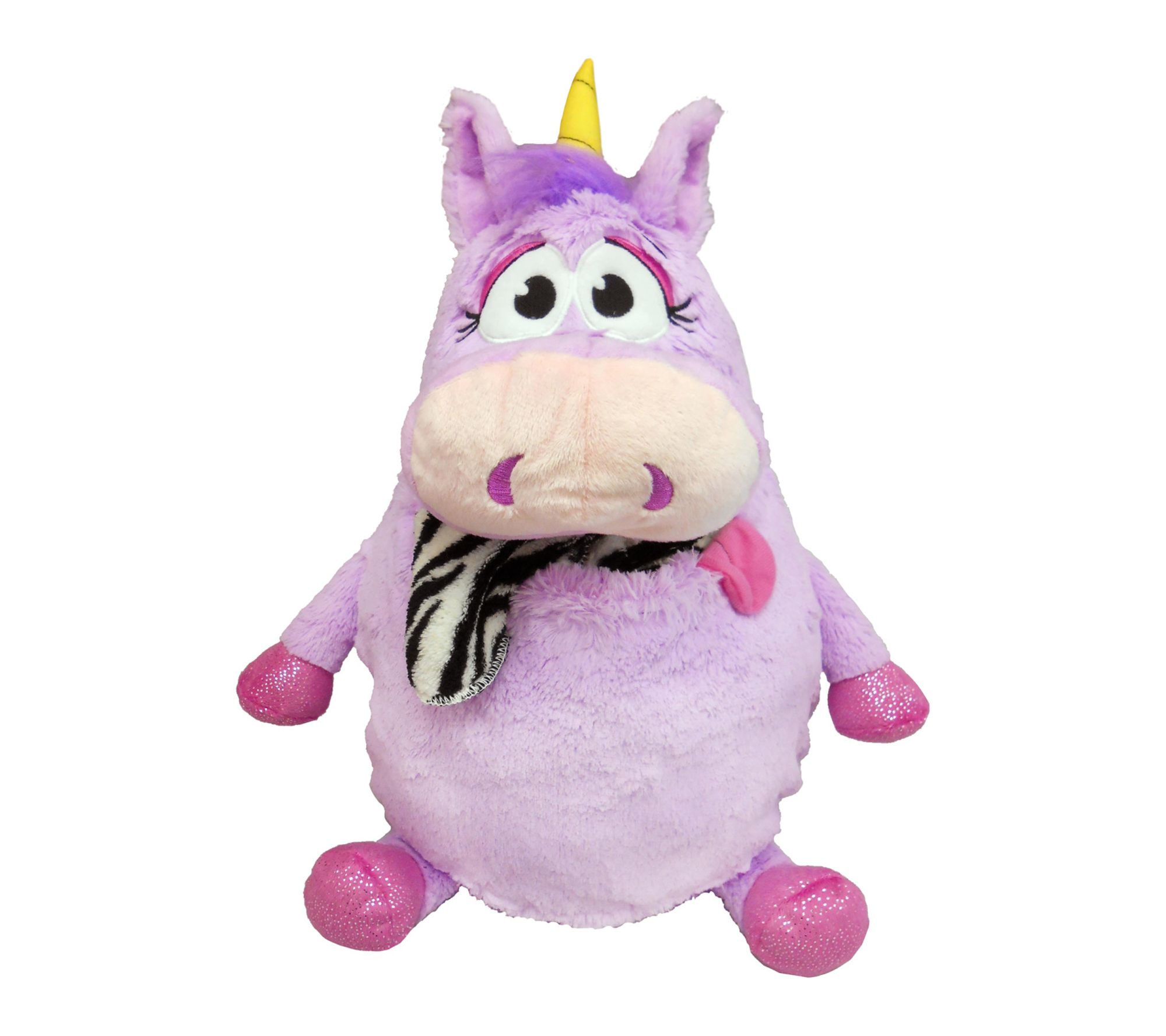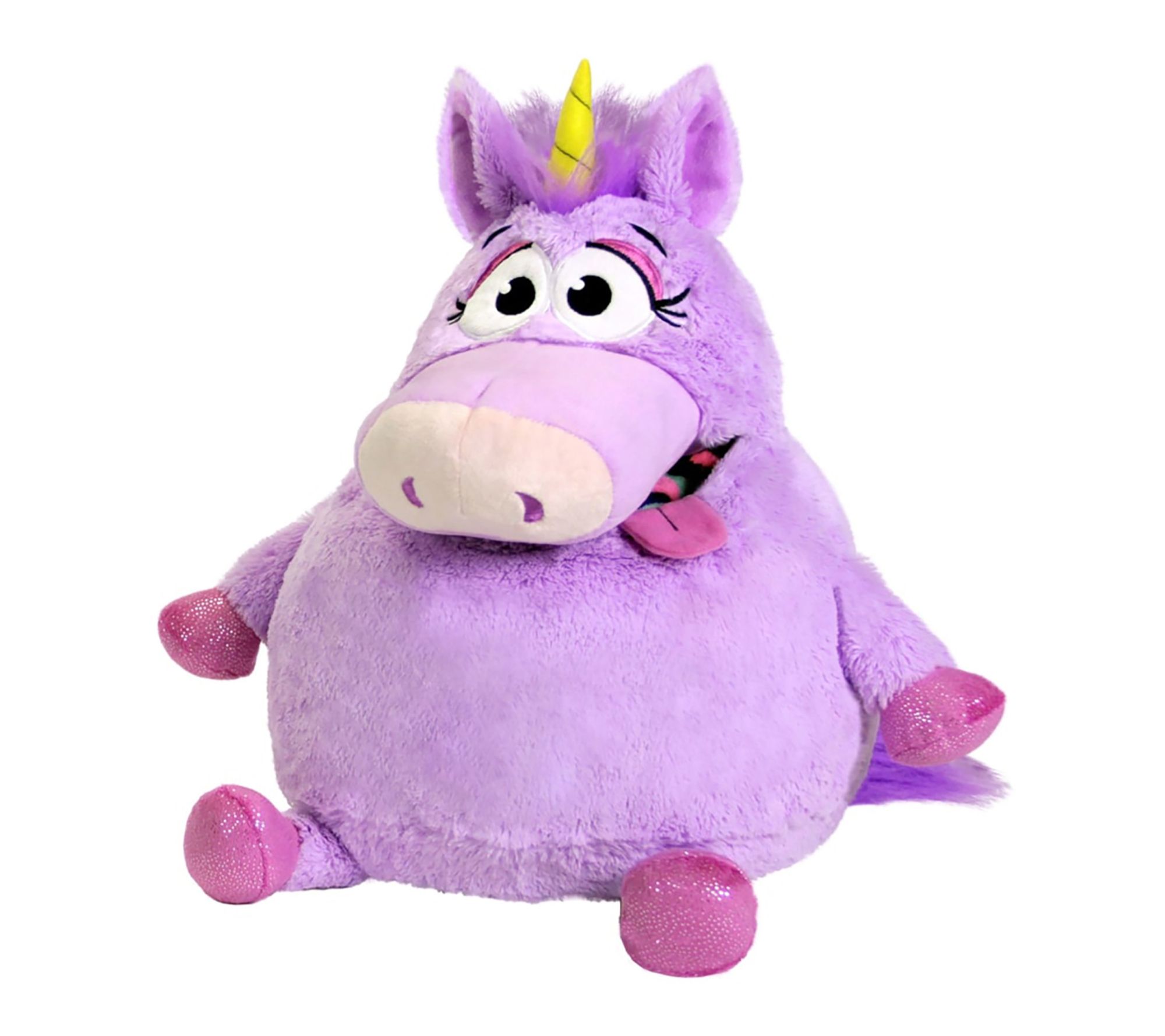 • Plush storage unicorn designed to store toys, clothes, and more inside its stretchy tummy