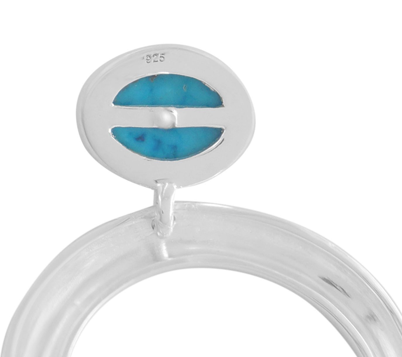 • Oval, bezel-set turquoise gemstone cabachon on top of polished, hinged crescent design
