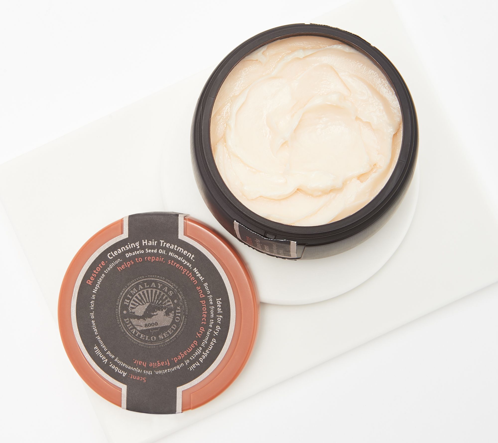 Formulated for all hair types, Dhatelo Restore Cleansing Hair Treatment has a lovely vanilla amber scent and gently removes product residue and impurities.