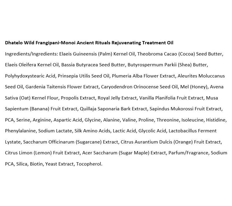 This duo of Wild Frangipani-Monoi Oil is an intensive treatment formulated to temporarily help moisturize dry hair and skin. It can be mixed with your body creams, shampoos, conditioners, and styling products for a boost of hydration. It's formulated for all hair and skin types and ideal for those seeking intense moisture for dry hair and skin.