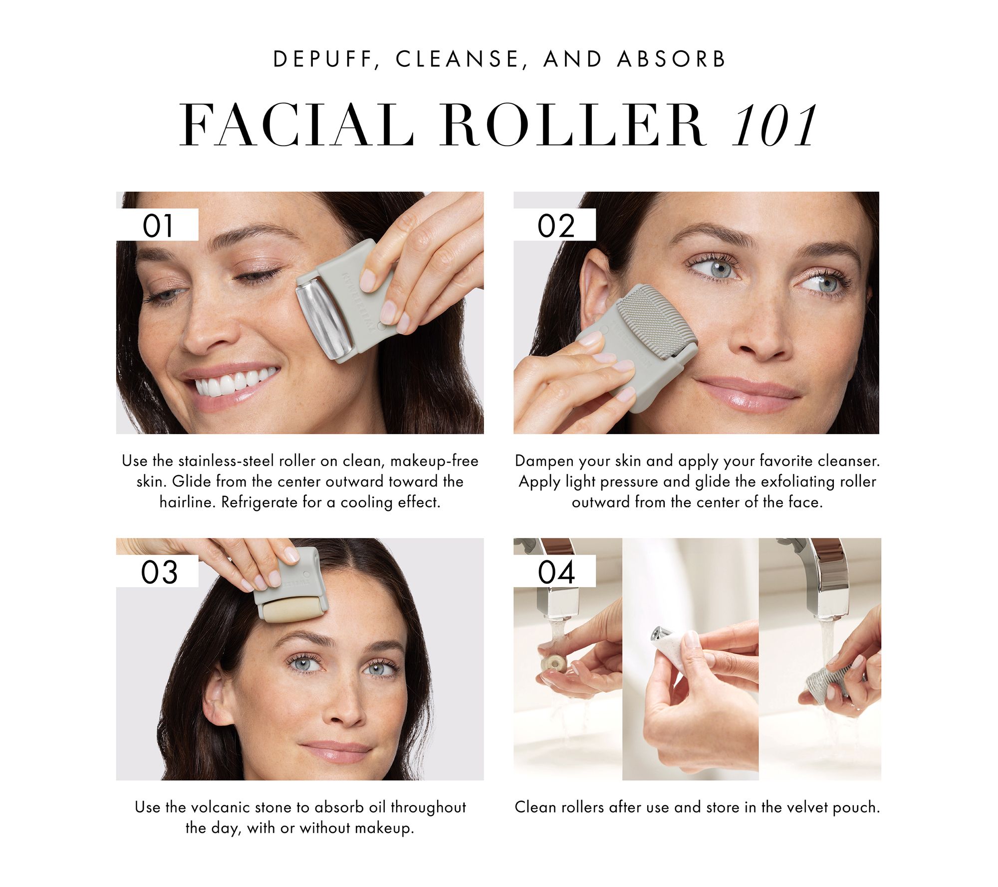 How do I use it: Massage skin using the stainless steel roller. Start with freshly washed, makeup free skin. Gently massage from the center of the face and glide outwards toward the hairline. Refrigerate the roller prior to use for a cooling and depuffing effect.