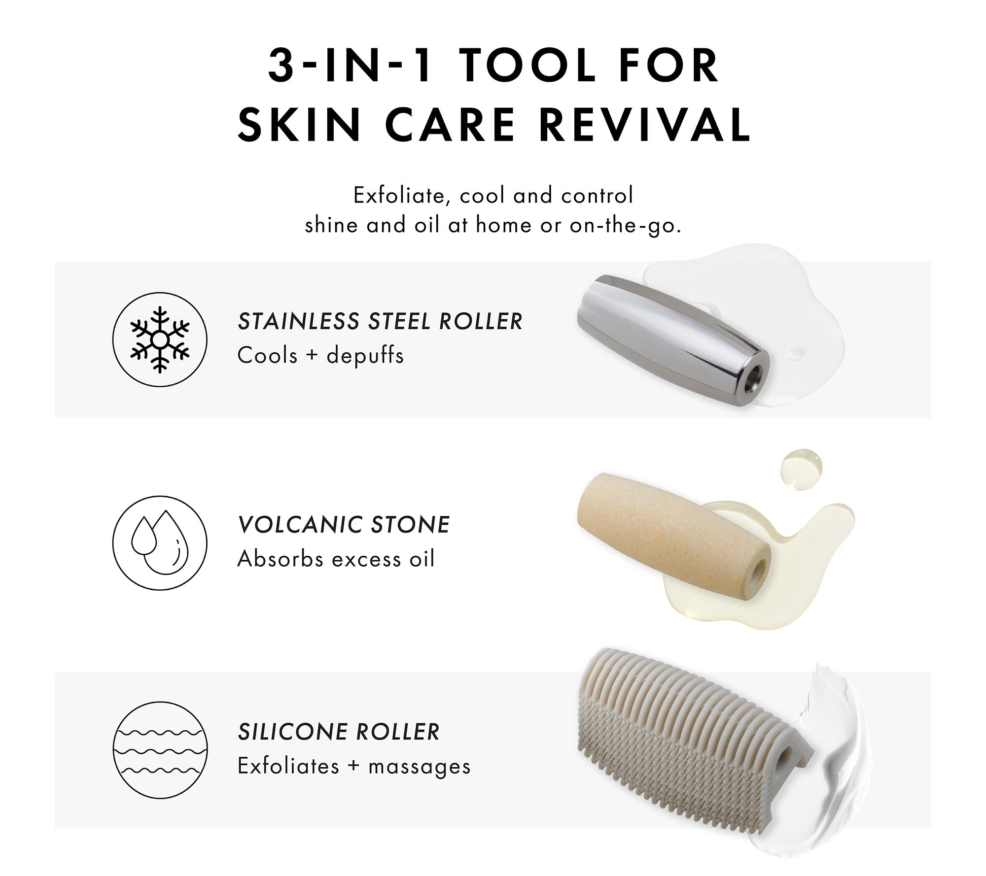 Tweezerman's 3-in-1 facial roller set is essential for self-care. This versatile beauty tool massages, exfoliates, and absorbs excess oil for radiant skin.