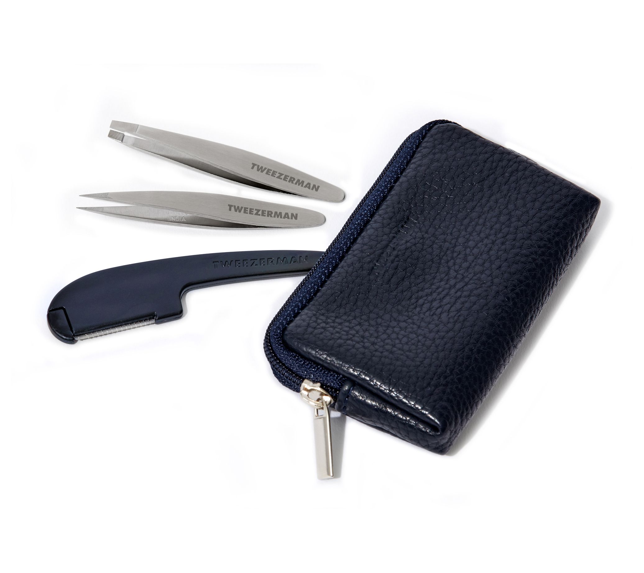 How do I use it: Prepare for hair removal by opening pores using a warm washcloth, not too hot to prevent redness. Use the Flat Tweezer to eliminate unwanted thick, coarse hair on the face or body. Use the Point Tweezer for removing fine or ingrown hairs. For maximum control, tweeze using your thumb and index fingers near the middle of the tweezer body. Grab the unwanted hair with the tweezer tips slanted at a 25-degree angle, squeeze down on the body of the tweezer, and pull in the direction of hair growth to remove hair from the root. Use the razor to touchup hair between brows. Place the razor at an angle against the skin. Apply short, feathery strokes with light pressure to remove hair where needed.