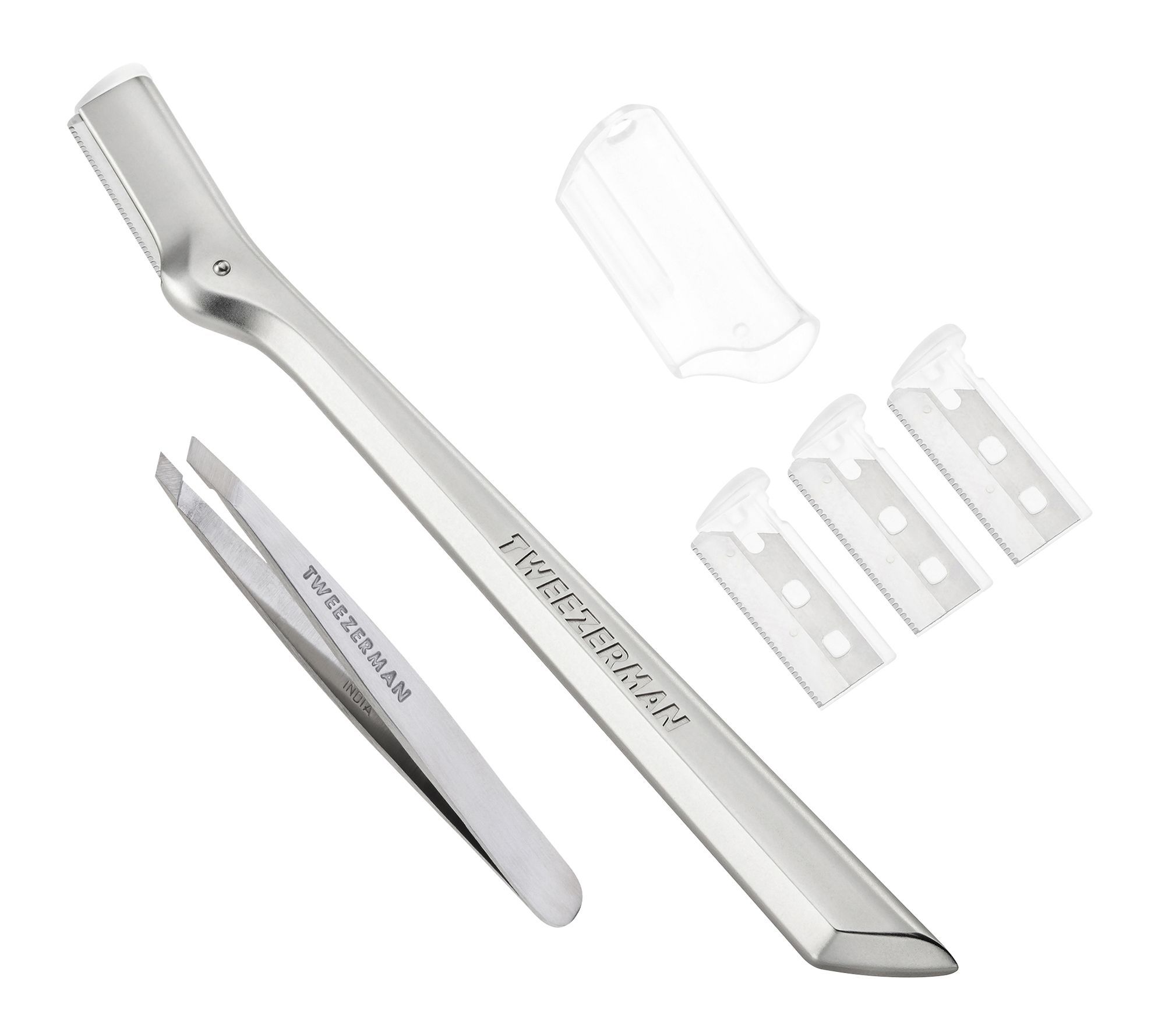 Simple Use: Outline your desired brow shape and use the tweezer to pull hair in the direction of growth. Follow up with the razor to remove baby-fine hairs with short, gentle strokes, always moving in the direction of hair growth.