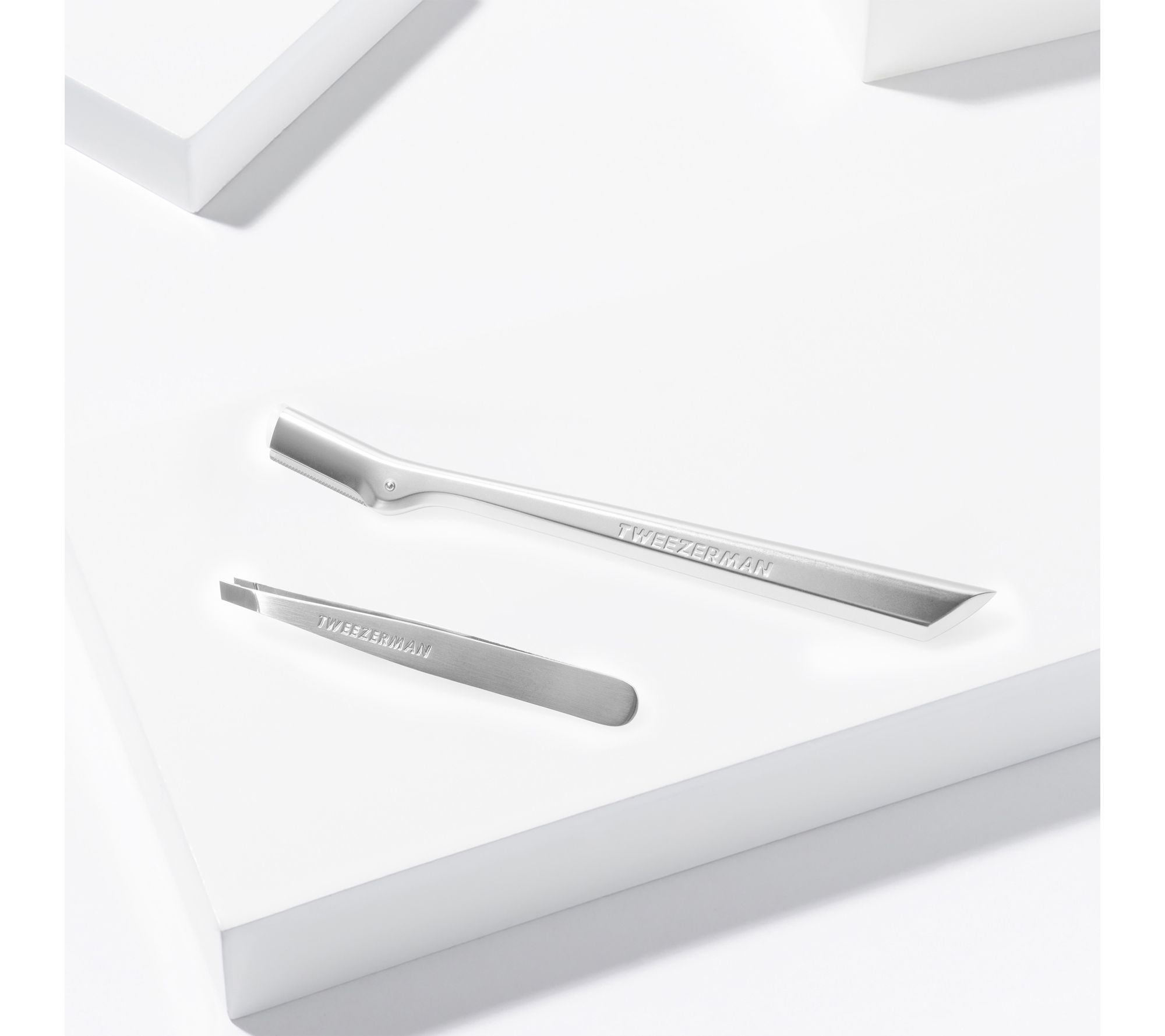 Tweezerman's brow razor is perfectly sized to remove hair around the brow or in hard-to-reach areas. The premium quality stainless steel blades gently remove brow hair for quick and pain-free touch-ups. The mini slant stainless steel tweezer features perfectly aligned, hand-filed tips with a 25-degree angle, perfect for working against the brow bone.