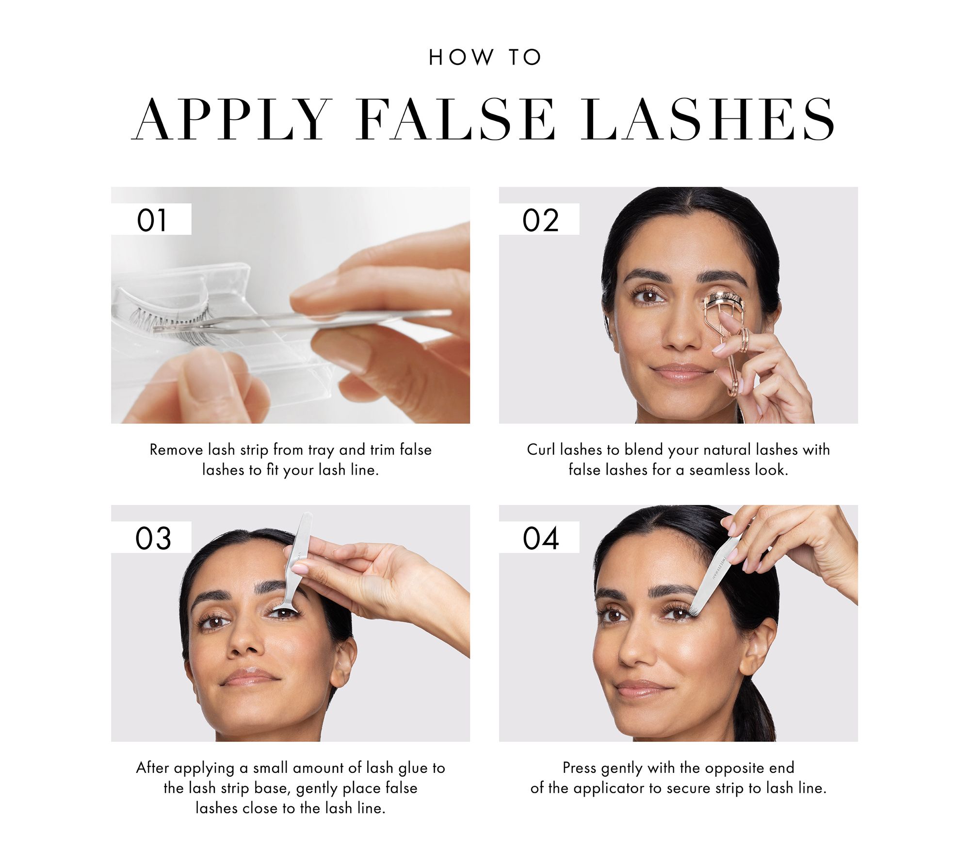 How do I use it: Start by measuring and trimming the width of your false lashes (not included) to fit your lash line. Holding the lash applicator between your thumb and index finger, position the opening of the applicator in the center of the lash strip, and trim excess length. Curl your natural lashes, this will blend the false lashes into your natural lashes for a seamless application. While holding the lashes with the applicator, apply a small amount of lash glue (not included) to the lash strip base. Wait several seconds for the glue to get slightly tacky. Gently rest the false lashes against the lash line, as close to the root of your natural lashes as possible. Once in place, use the opposite end of the applicator to gently press lashes into the lash line to help secure them into place.