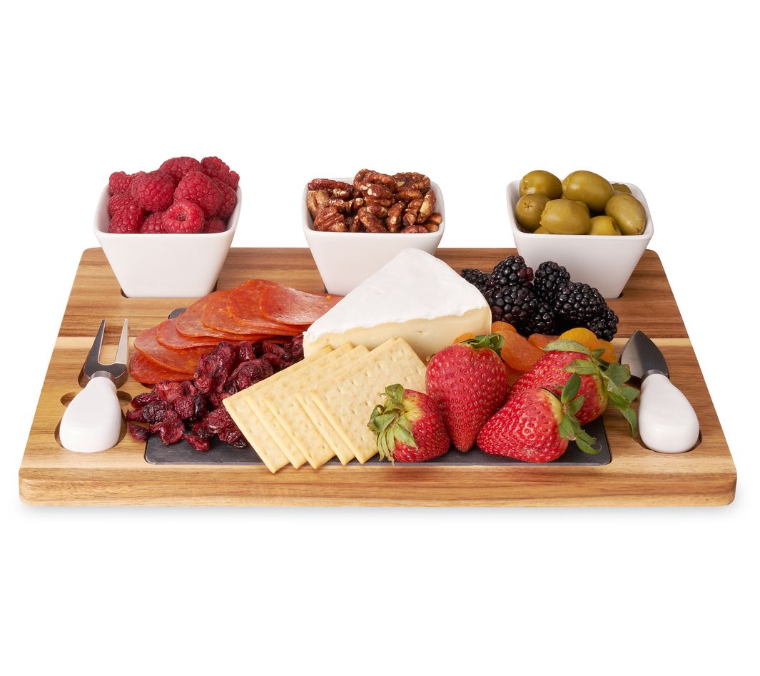 Twine Acacia & Slate Cheese Board Set with Ceramic Bowls