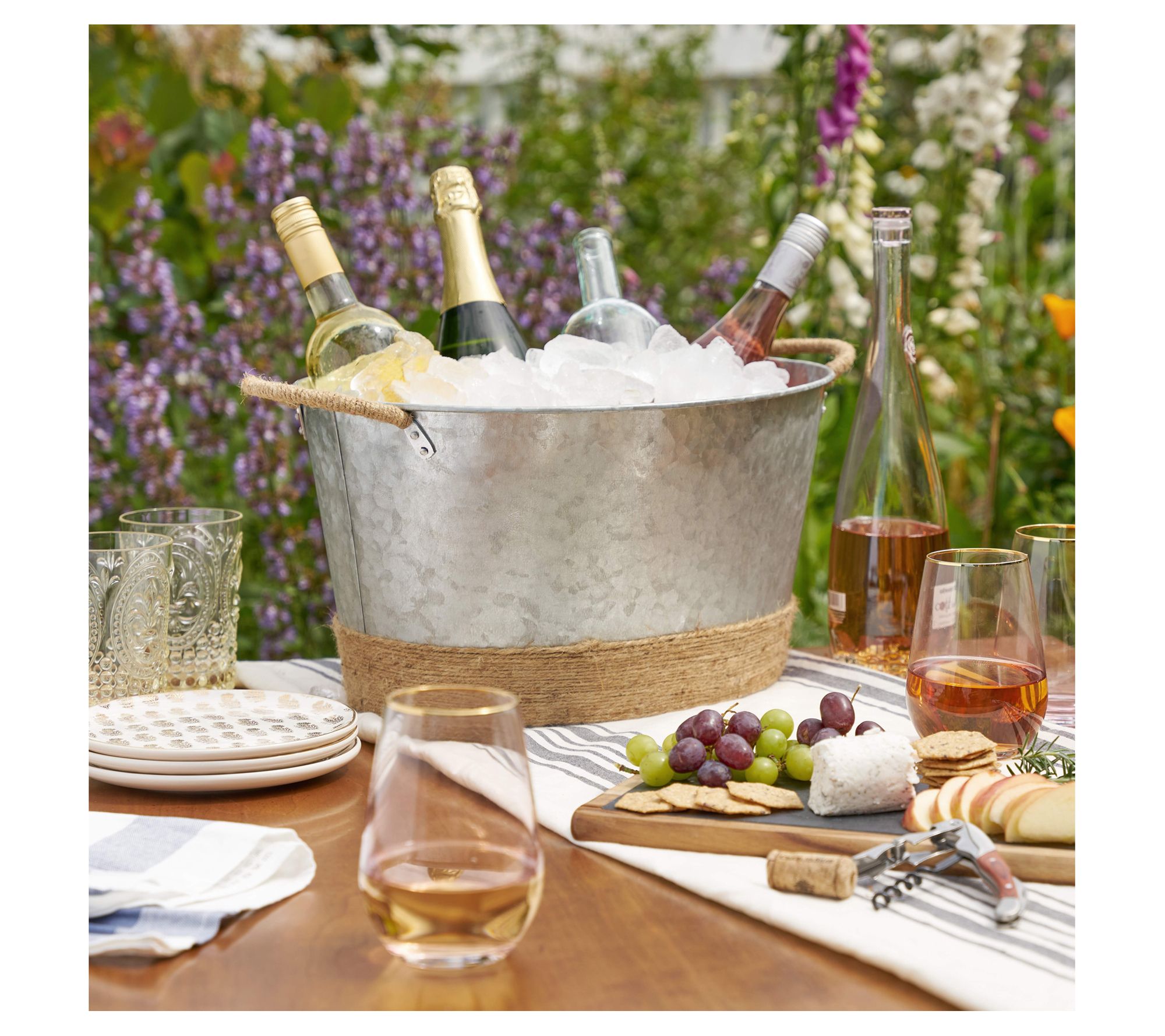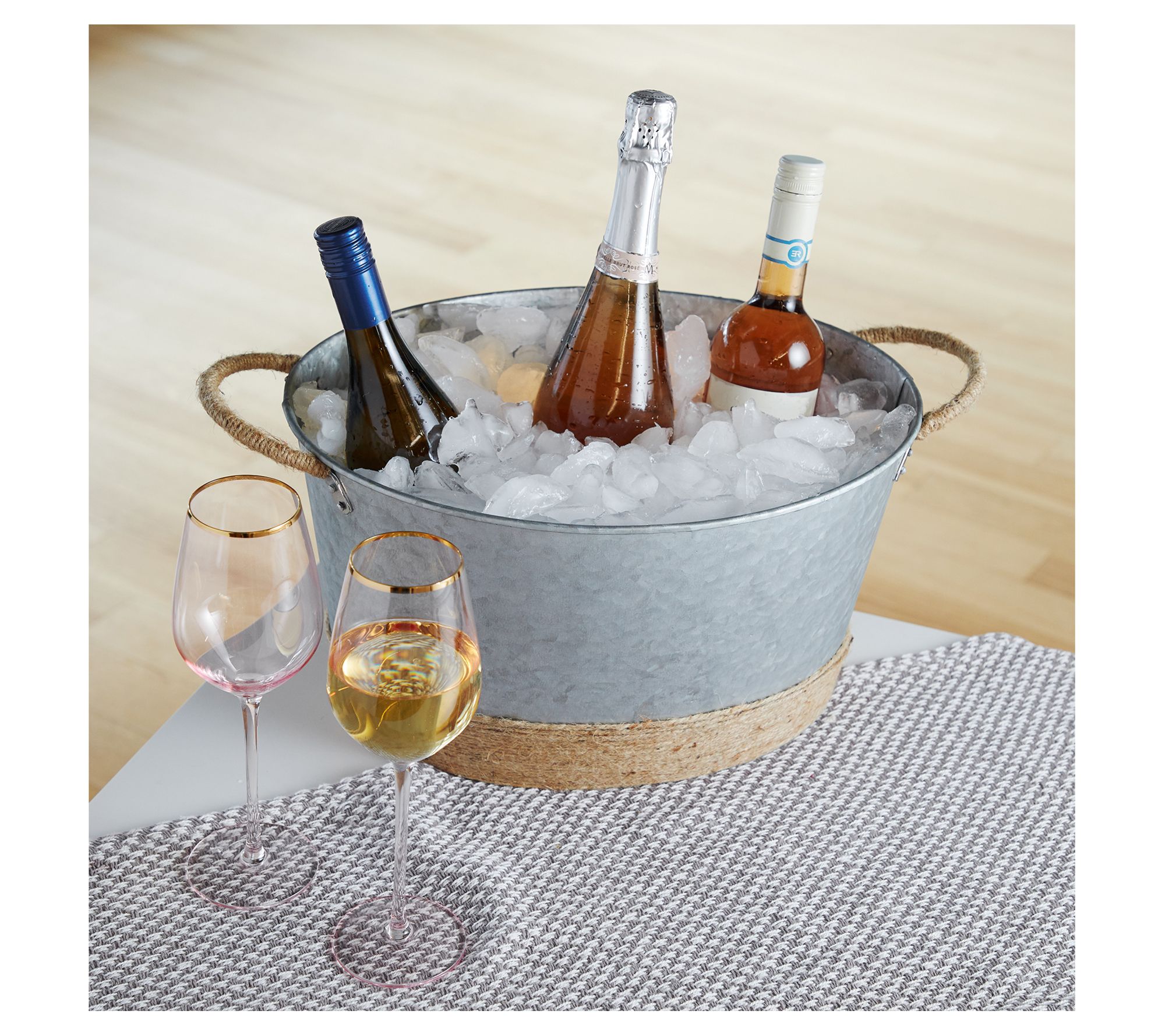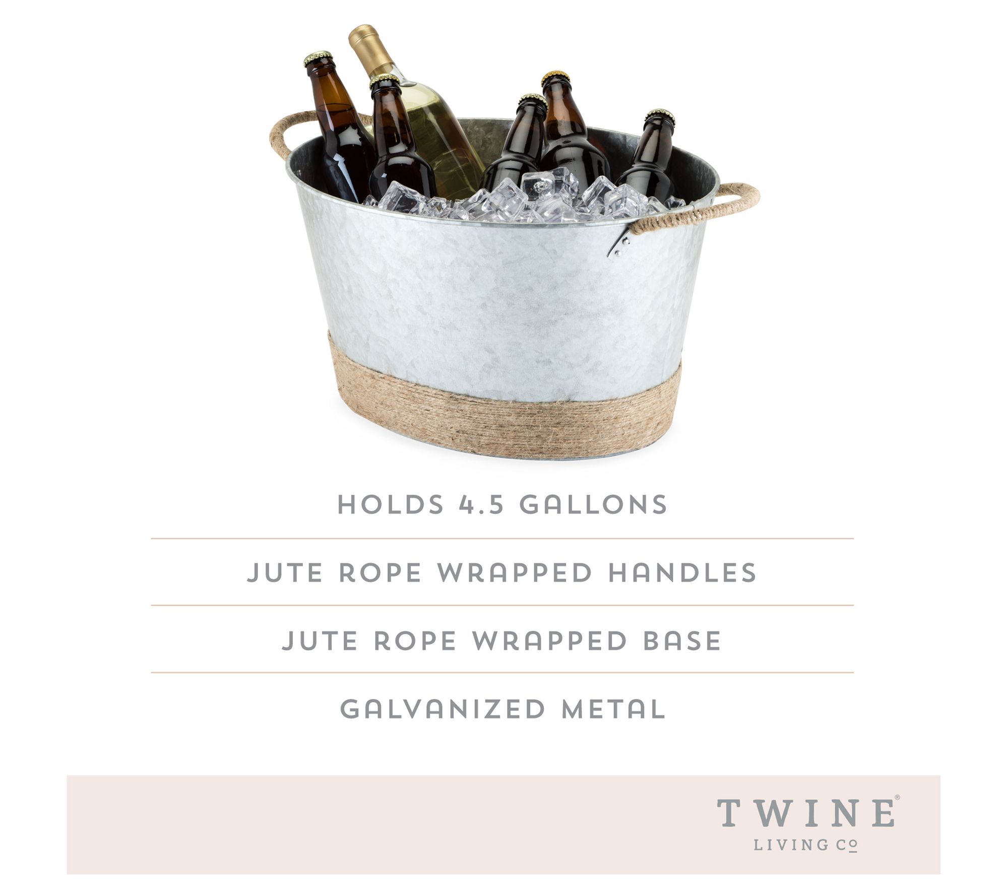 Elevate your outdoor gatherings or indoor decor with this tub featuring a weathered finish and rope-wrapped handles. It seamlessly blends rustic charm with functionality, boasting a large capacity that's ideal for chilling beverages. This piece embodies the essence of rustic farmhouse style, making every event feel like a vineyard getaway. From Twine.