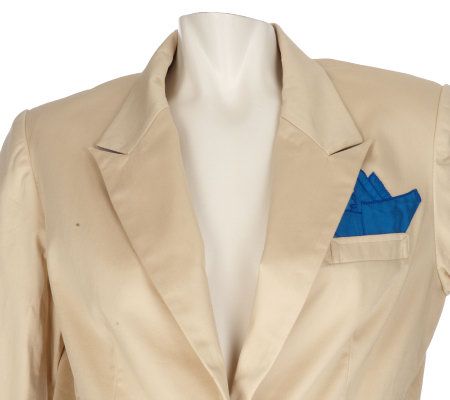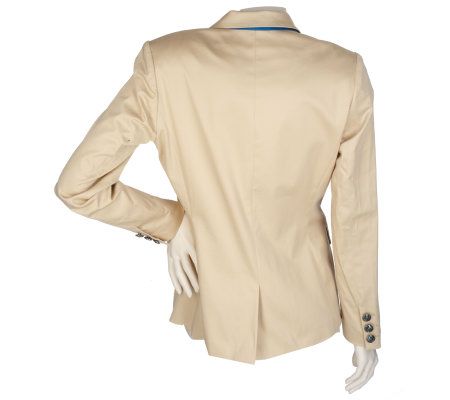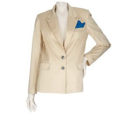 Keep your finger placed firmly on the pulse of fashion with this boyfriend-style blazer. Impeccably tailored from top to bottom, the jacket features a V-neckline, a double-button closure, and two decorative side welt pockets. Shoulder pads and princess seams lend shape and structure to the silhouette. From Twist by Christian Francis Roth.