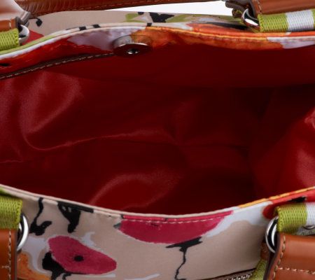 • Webbing details, ne front zip pocket, two side slip pockets, magnetic snap top entry, double shoulder straps, key fob hanger