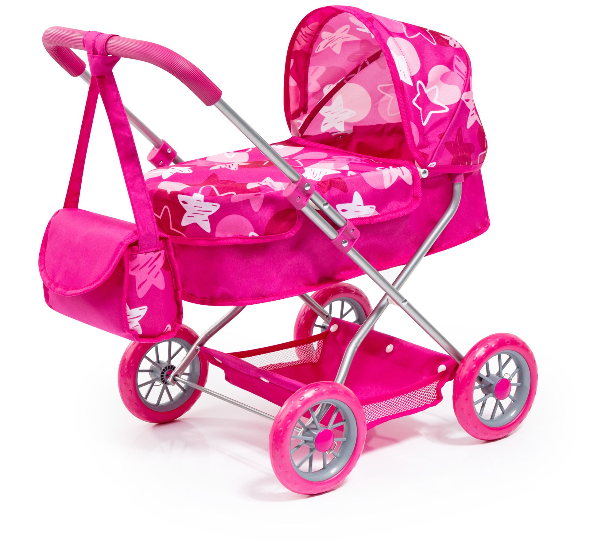 • Includes doll pram, bag, plate, fork, spoon, and pacifier