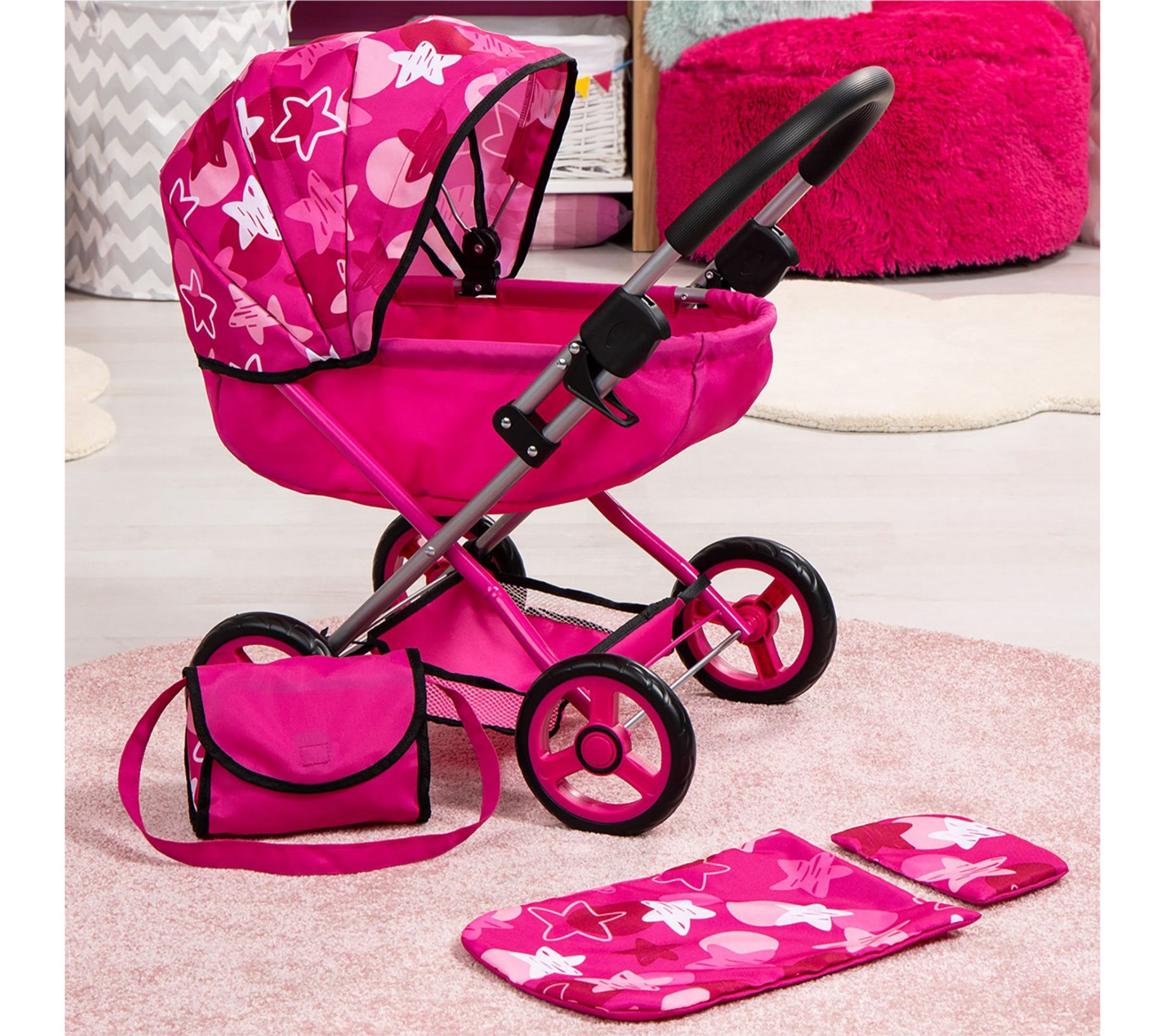 Your little one will be ready to wheel their favorite doll around town with this colorful pram set. It includes all of the accessories they'll need to play pretend. From Ulba International LTD.