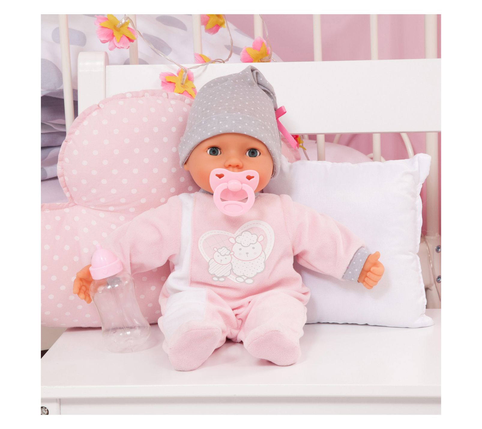 • Includes doll, bottle, pacifier, and 2 AA batteries