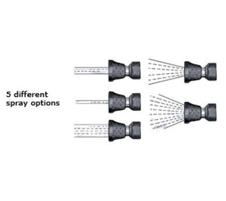 To the rescue! The Ultimate Fireman's Nozzle offers five adjustable spray patterns, from a powerful jet for heavy-duty cleaning to a soft, gentle rain for watering flowers. It features a two-way shut-off, and a built-in valve for maintaining a specific spray pattern. Made of rugged and reinforced materials, this nozzle is built to last.