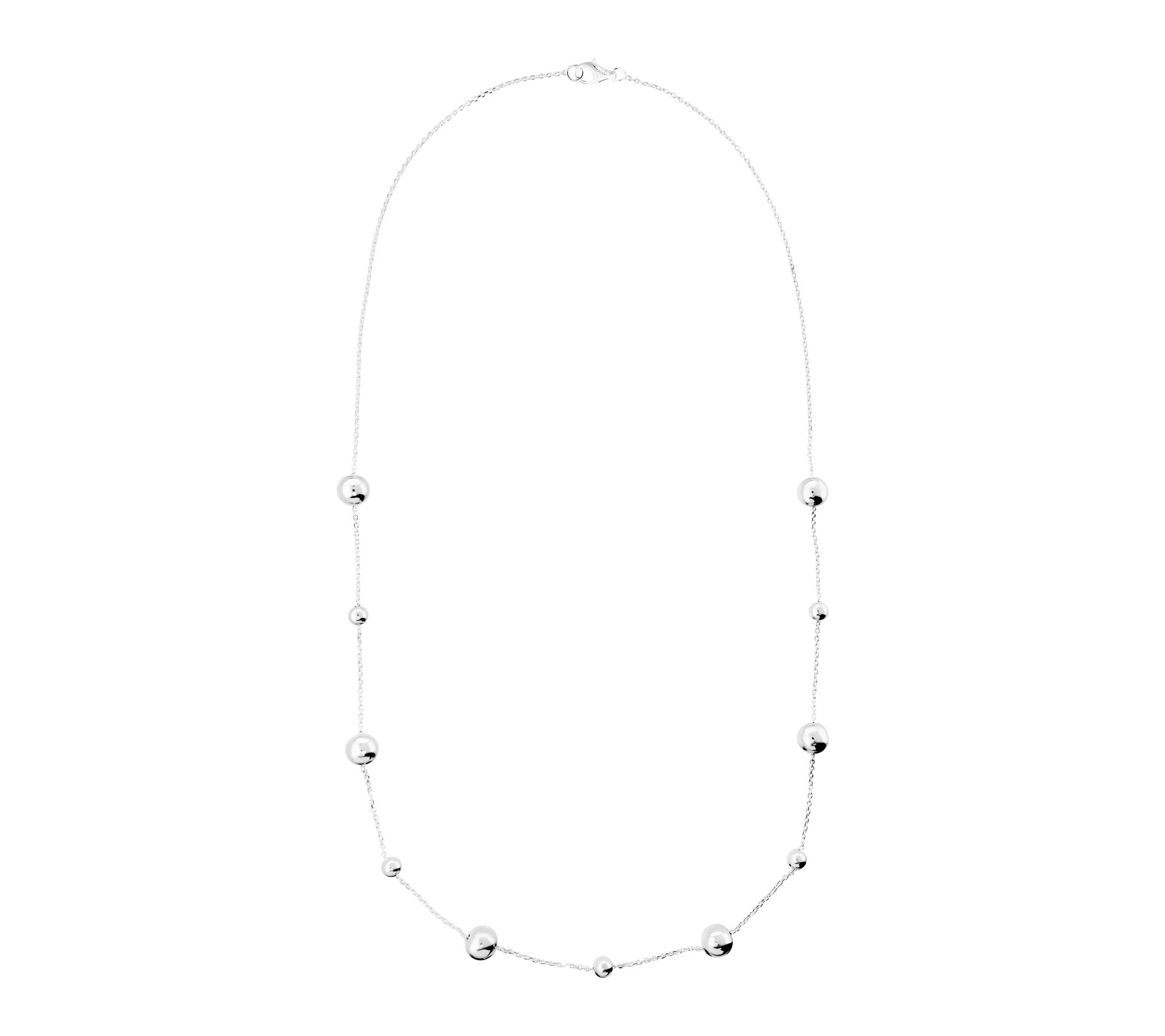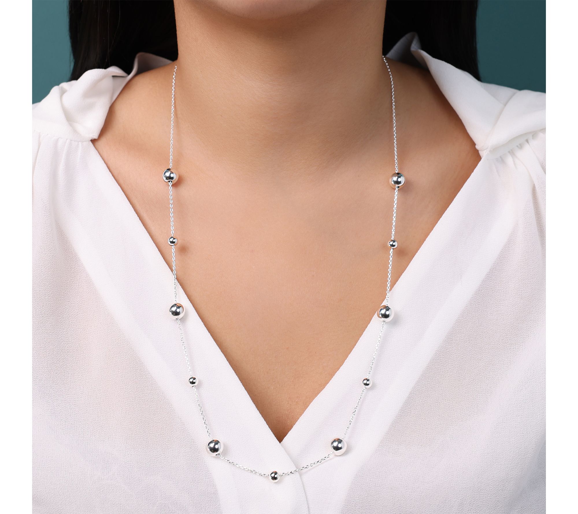 A touch of shimmer transforms every look with this elegant bead station necklace. Whether you're layering it with other favorites or making it the finishing piece to a classic ensemble, the polished sterling silver beads in varying sizes add an artful accent that transitions beautifully from day to night. From UltraFine® 950 Silver Nickel-Free Jewelry.