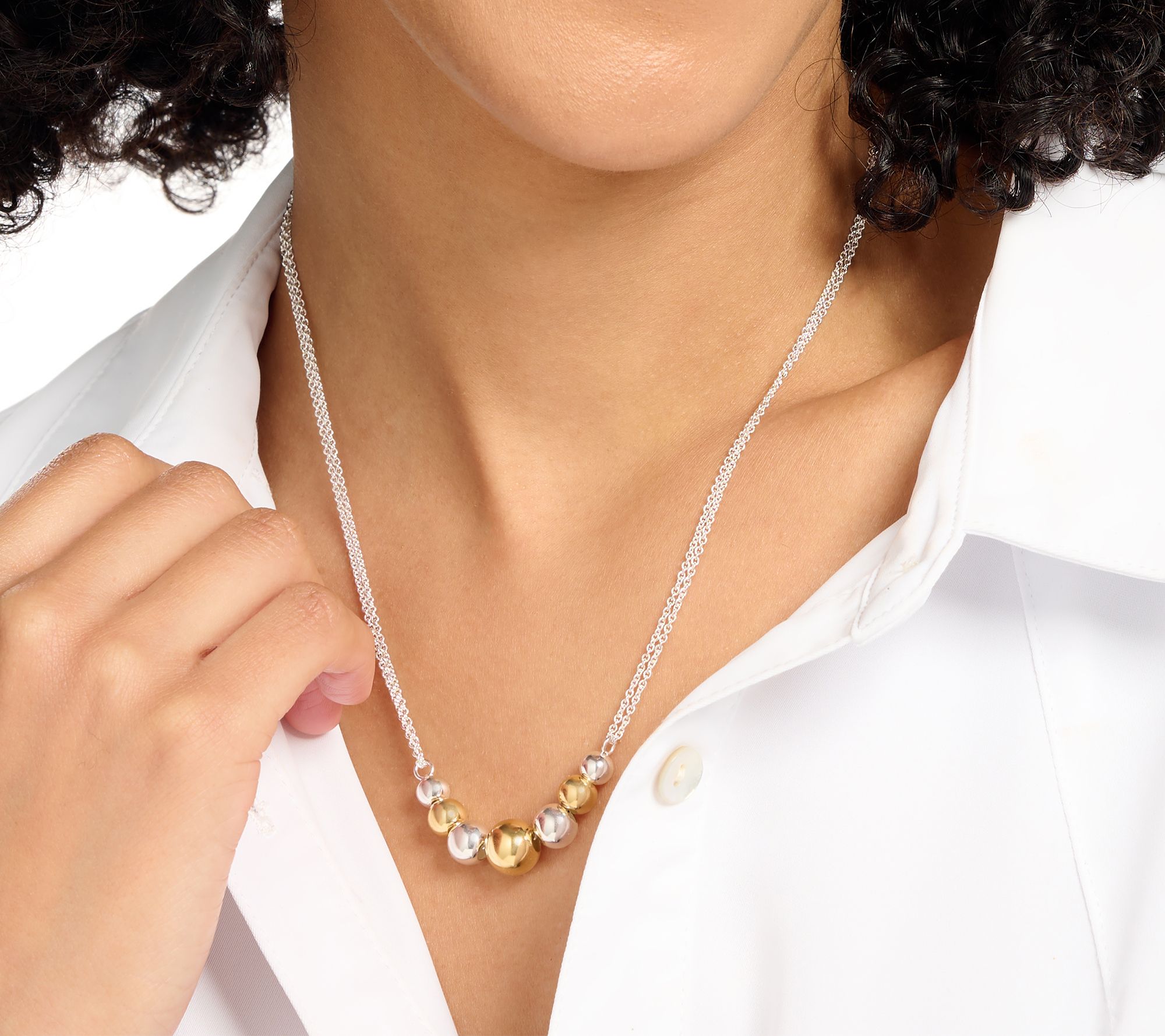 So many ways to wear, this adjustable mini rolo chain necklace boasts a station of gorgeous graduated beads that can be worn in a shorter 18"L style or extended up to 32"L through sliding beads. From UltraFine® 950 Silver Nickel-Free Jewelry.