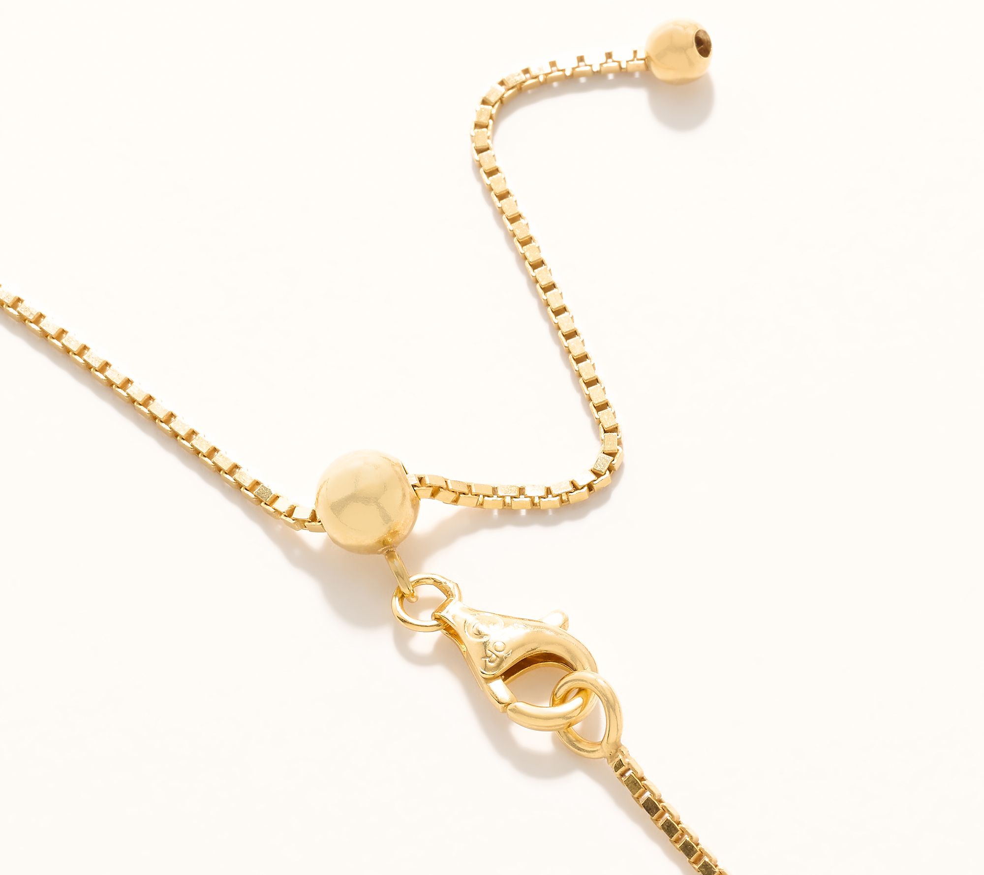 • Adjustable length veneziana box chain; polished finish