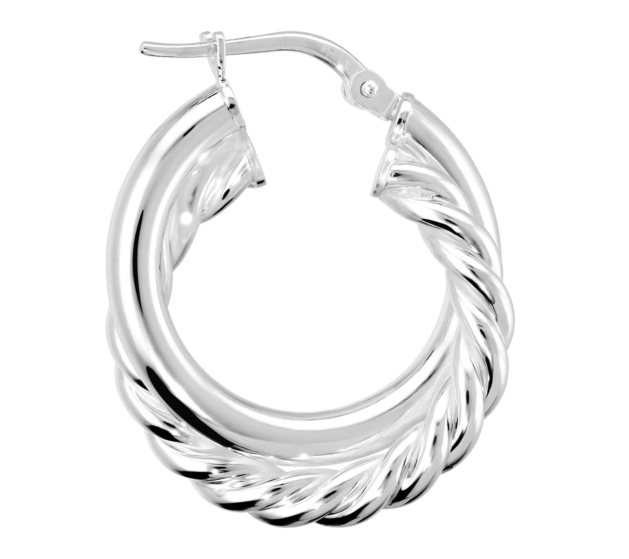 A touch of Italian artistry transforms your look with these hoop earrings, where two distinct textures -- one sleek and polished, the other intricately braided -- intertwine for a sophisticated statement. Designed to flatter with left and right orientation, these 1" beauties catch the light beautifully and transition effortlessly from work to weekend. From UltraFine® 950 Silver Nickel-Free Jewelry.