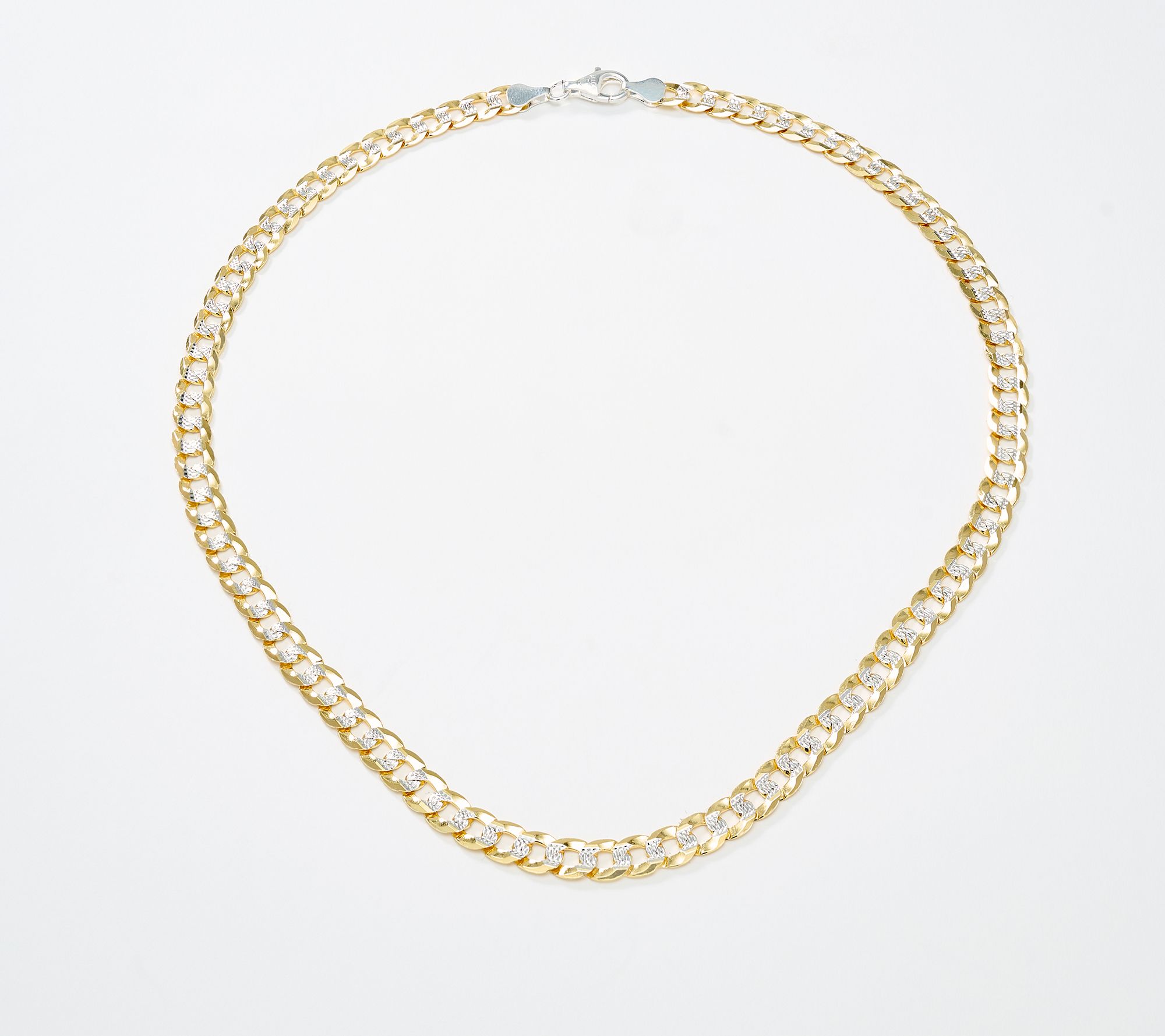 • Flat curb link chain; diamond-cut accents; polished finish