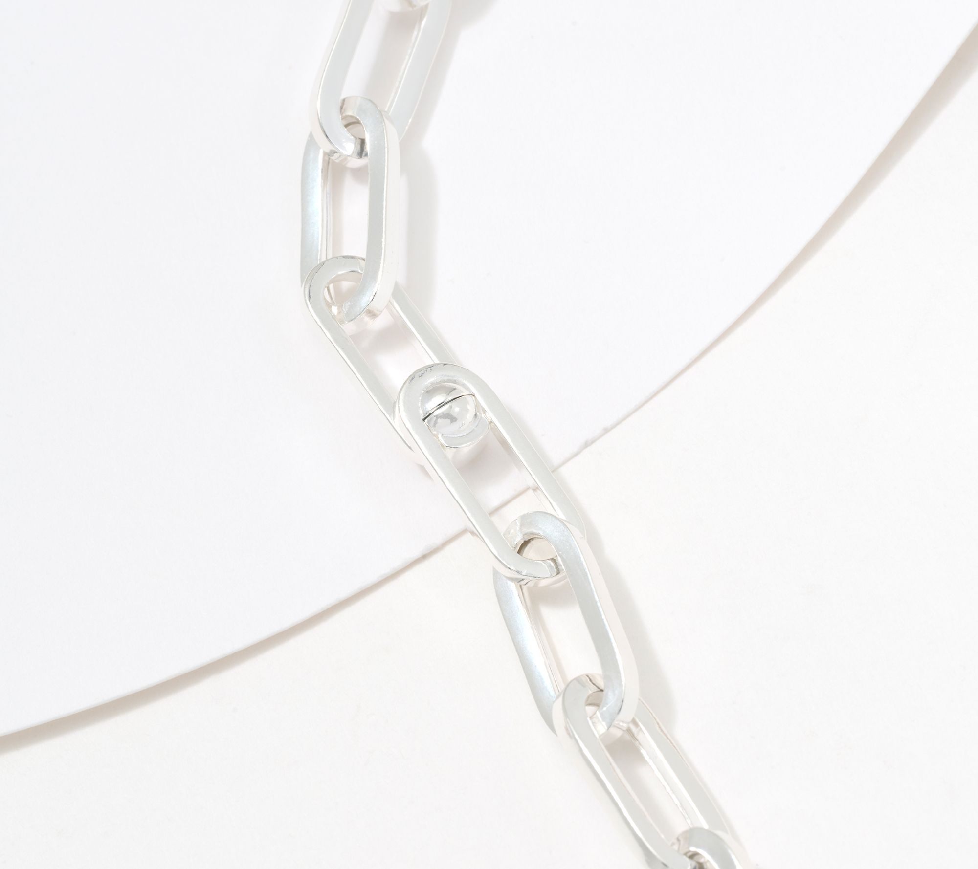 • Elongated paperclip chain; polished finish