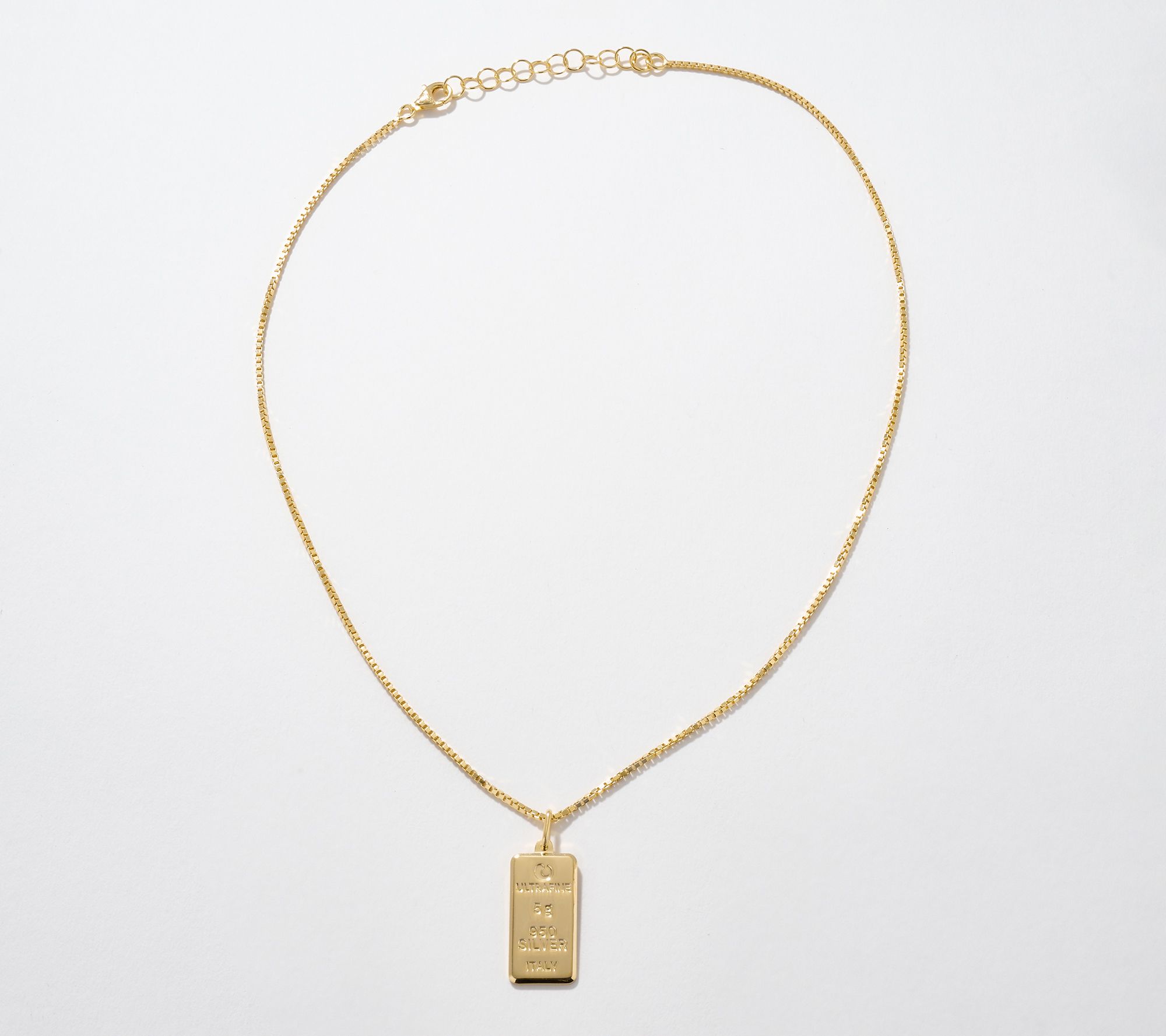 Boasting buried treasure appeal, this ingot pendant necklace makes a luxurious look with its polished finish and Italian stamp and logo imprints. It will add a rich radiance to everything from resort wear to everyday wear. From UltraFine® 950 Silver Nickel-Free Jewelry.