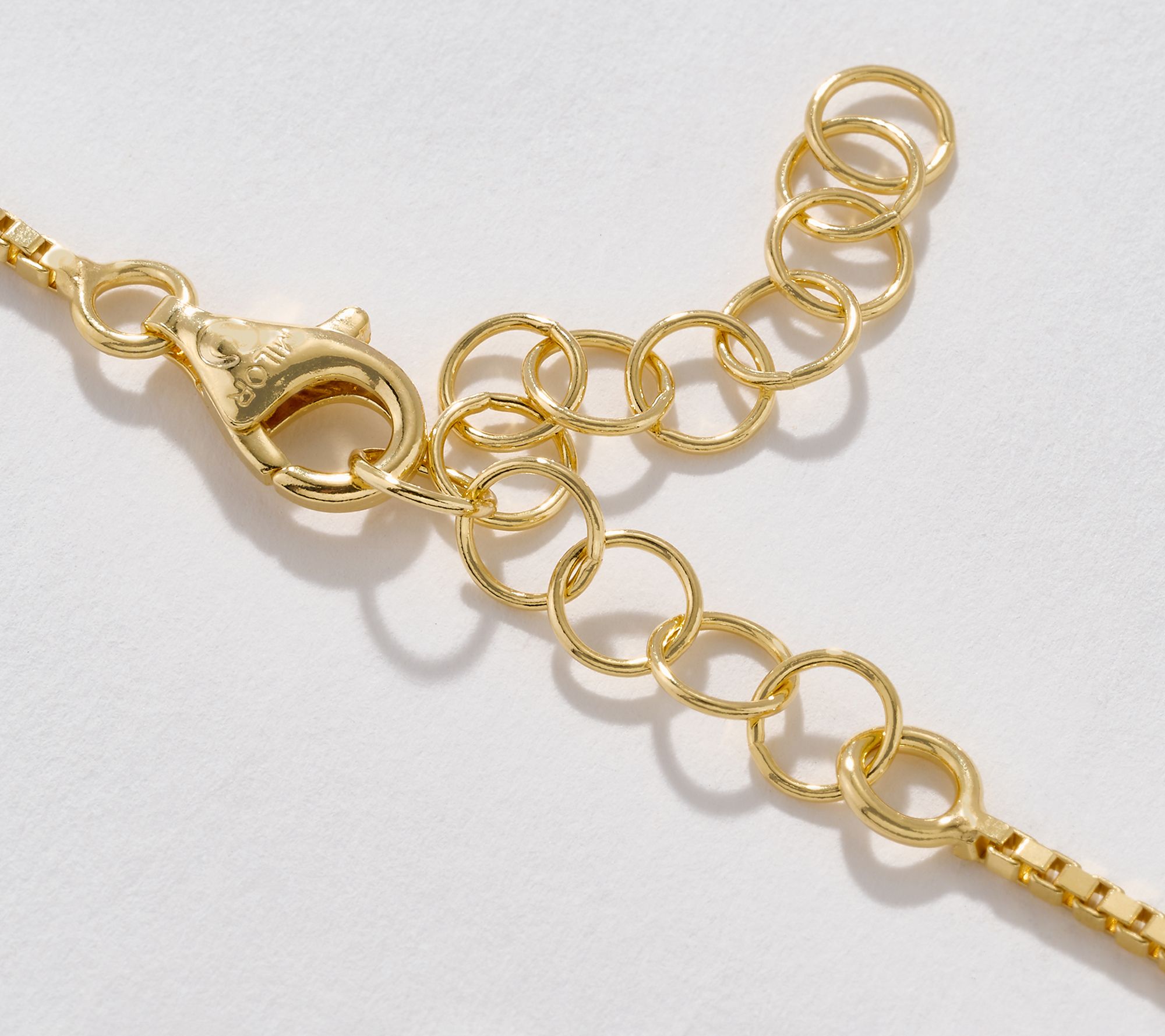 Approximate measurements: Pendant 1-3/8"L x 1/2"W; Chain 18"L with 2" extender x 1/16"W