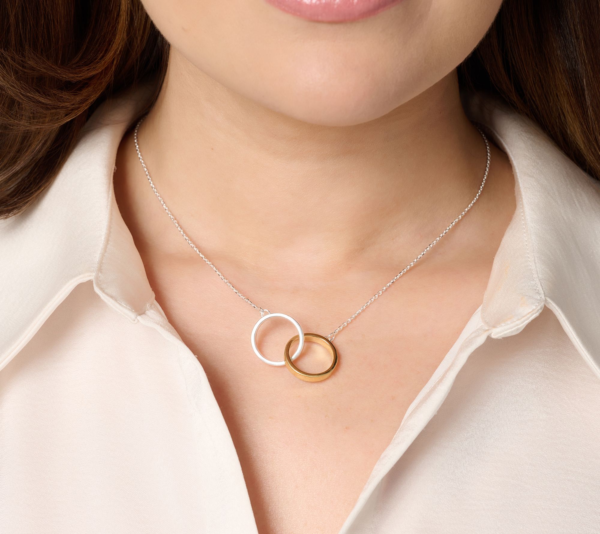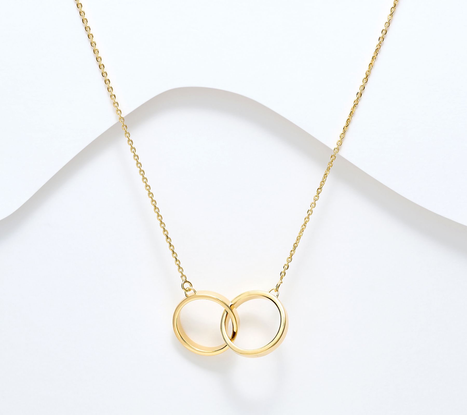 • Forzatina chain design; interlocking double circle polished pendant; diamond-cut detail