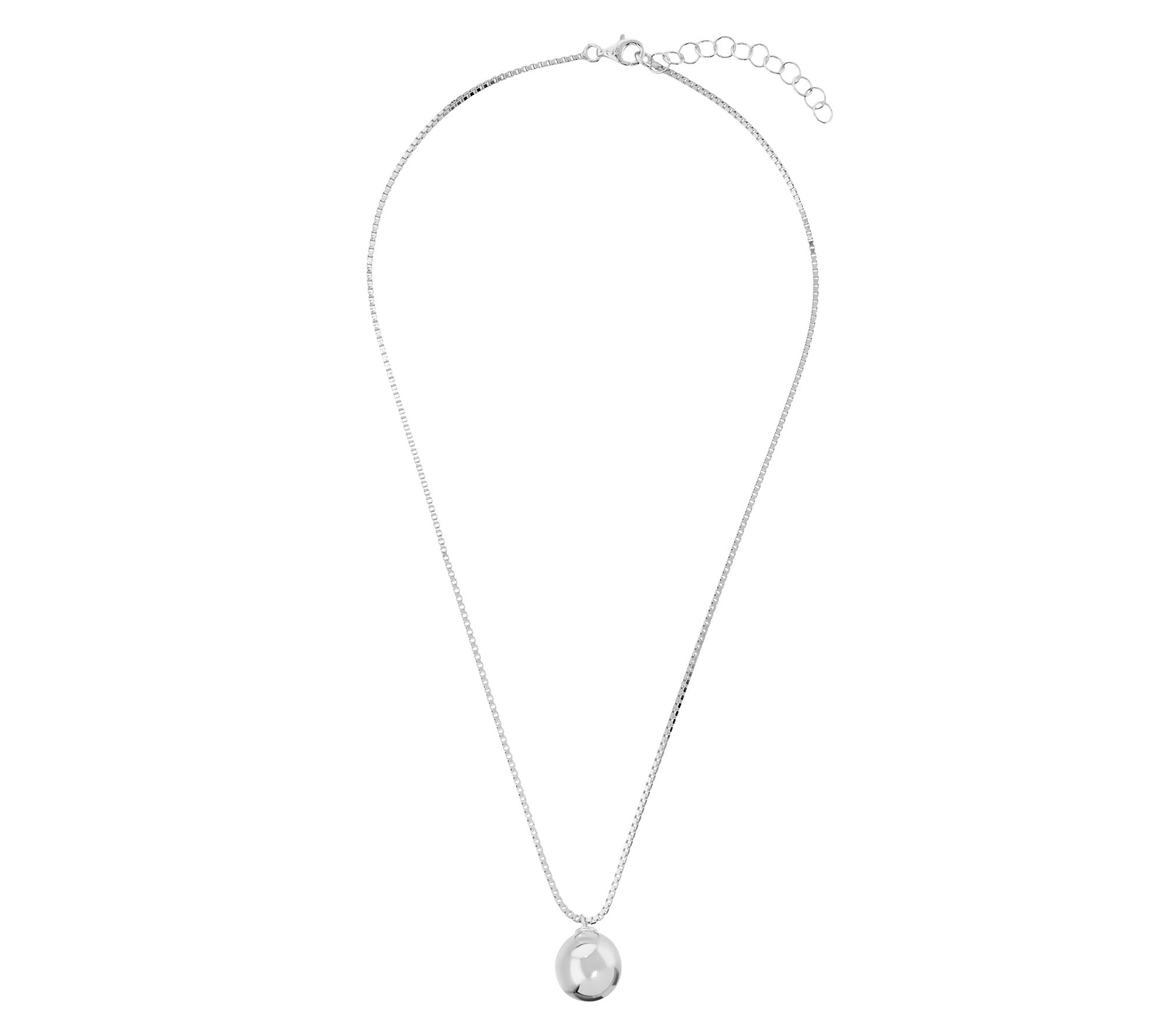 Graceful curves meet beautiful artistry in this circle pendant necklace, catching the light with every move. The polished bead slides smoothly along a sleek box chain, creating understated sophistication -- whether paired with a blouse for brunch or layered for an evening out. From Ultrafine 950 Silver.