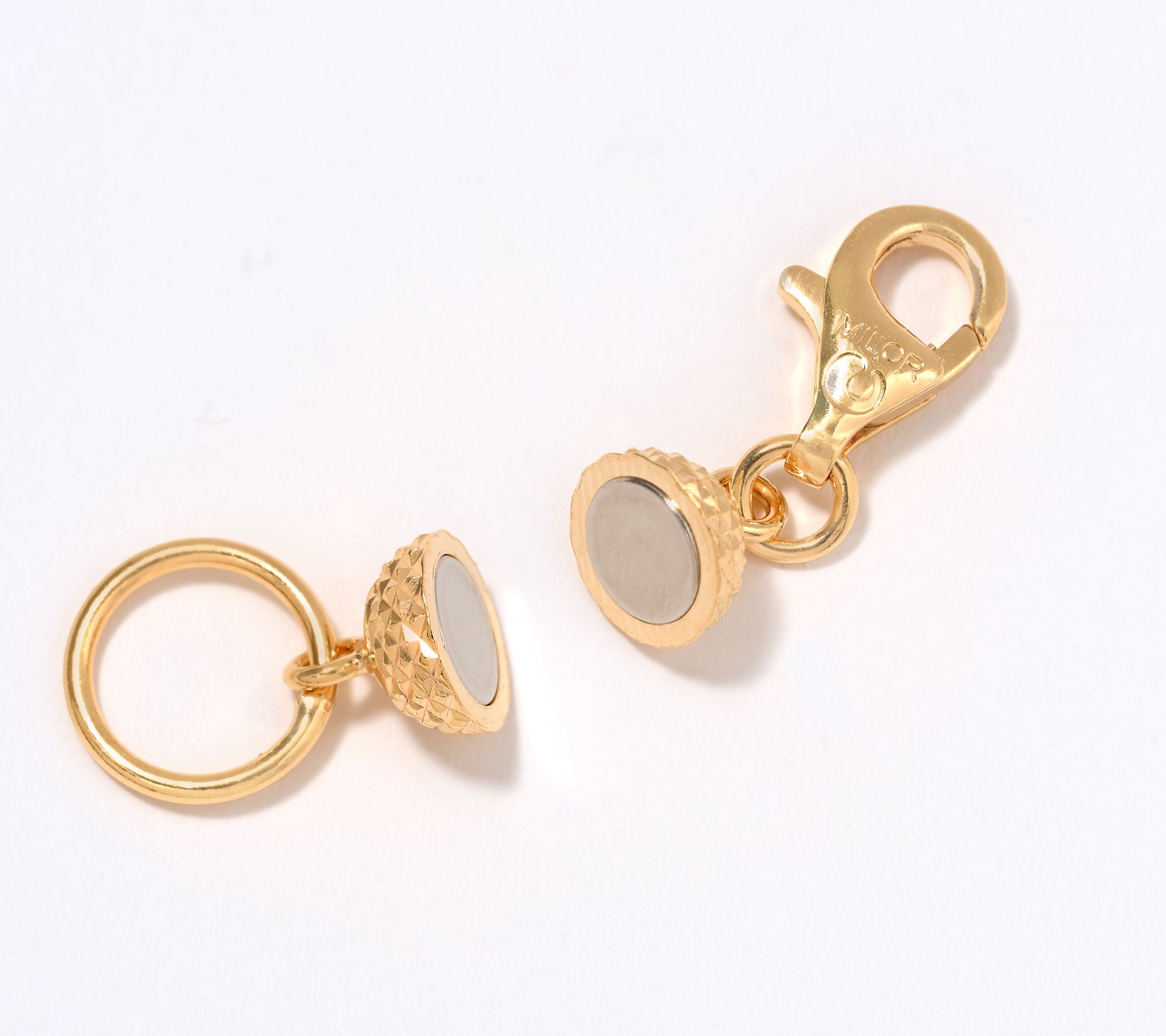 No assistance needed. Take back your ability to accessorize independently with this set of jewelry magnetic claps. Designed to bring both style and convenience to your necklaces or bracelets, each features a diamond-cut finish that adds subtle shine. The lobster claw clasp and O-ring on each end attach to your own jewelry pieces, turning hard-to-attach necklaces or bracelets into easily wearable designs thanks to the magnetic clasp. From UltraFine® 950 Silver Nickel-Free Jewelry.