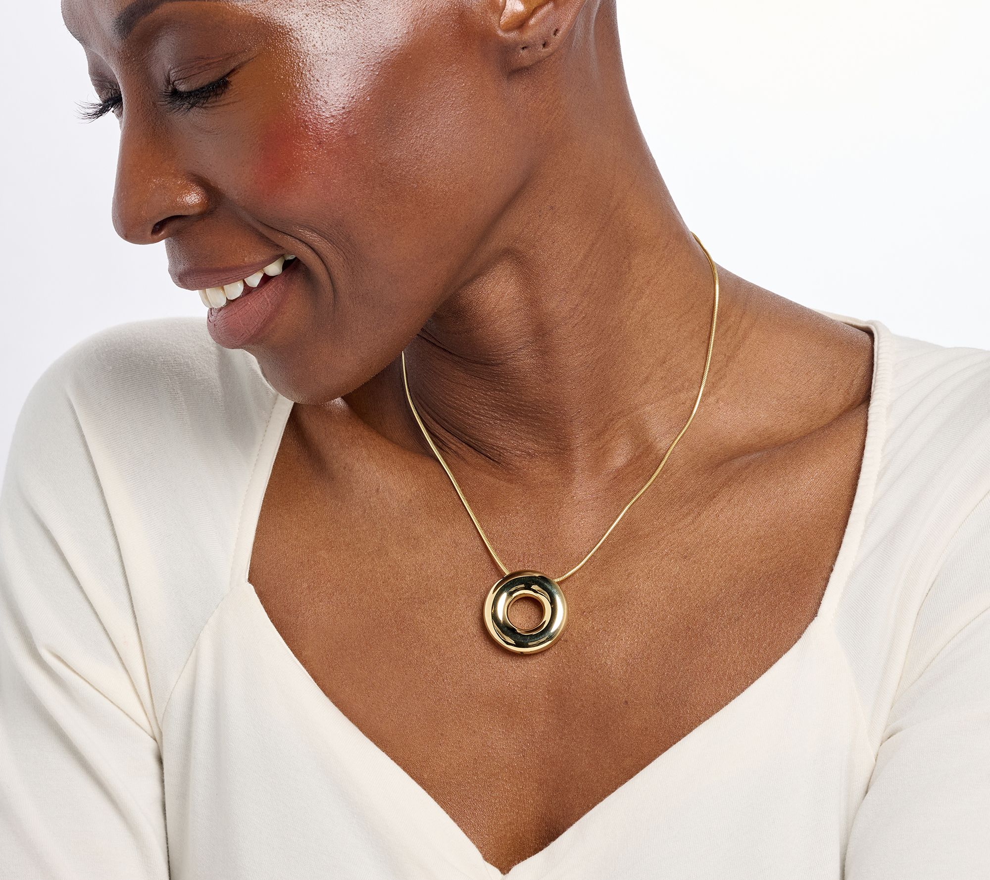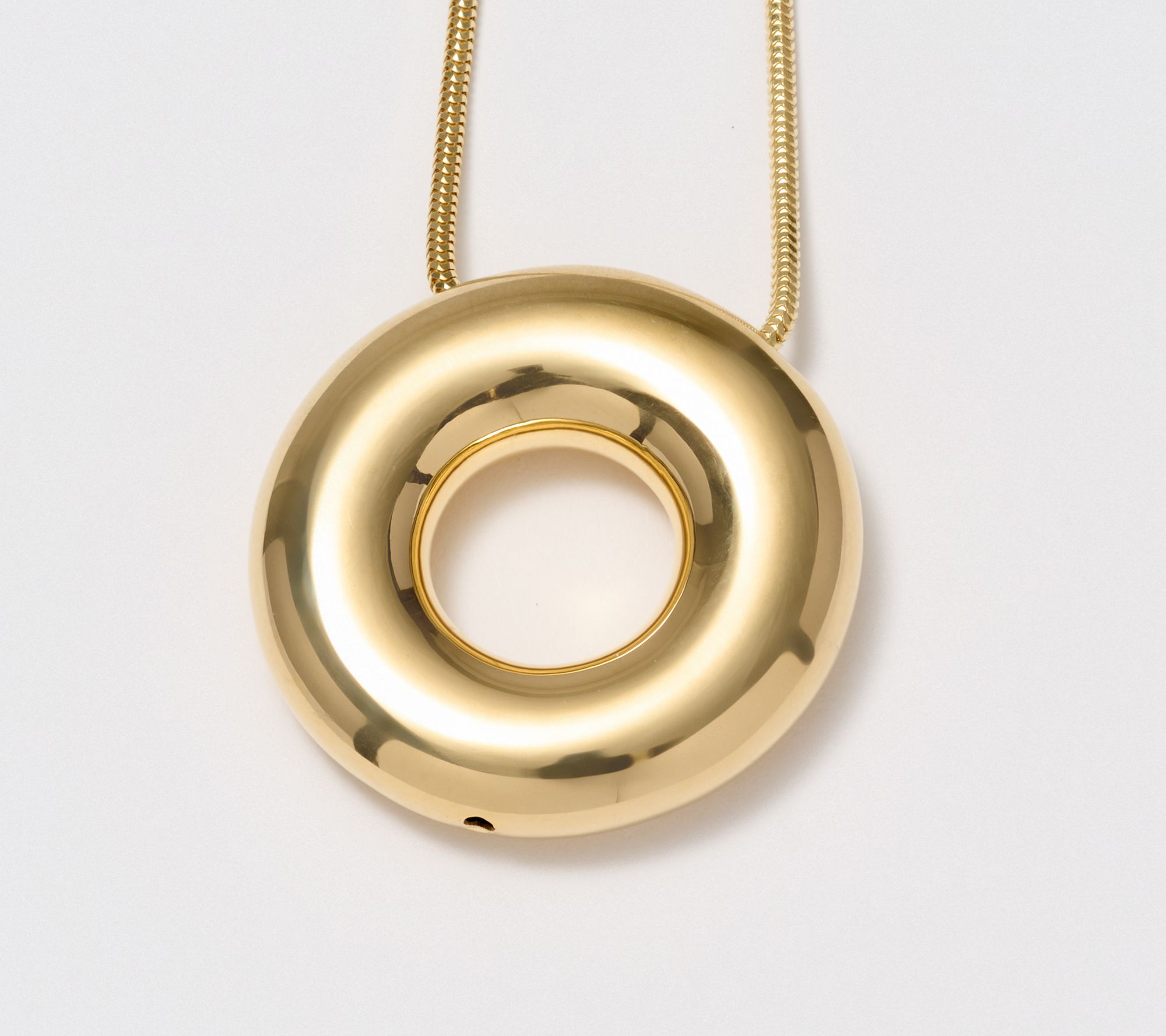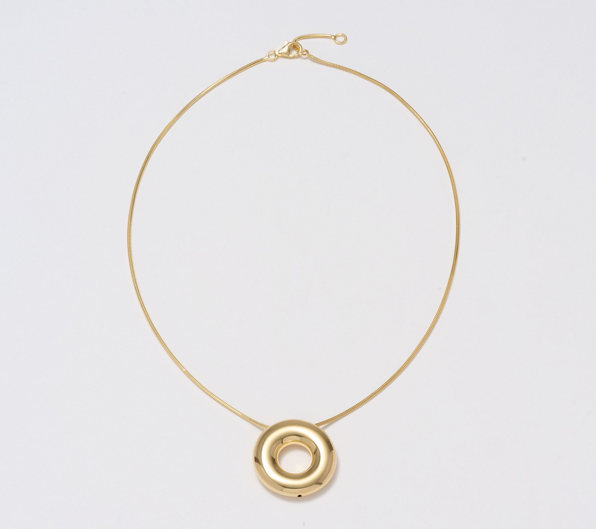 Refined style meets modern elegance with this circular pendant necklace, crafted for everyday versatility. The diamond-cut snake chain and polished donut-shaped pendant create a light-catching accent that's ideal for layering with your favorite pieces or wearing alone as a striking focal point. From UltraFine® 950 Silver Nickel-Free Jewelry.