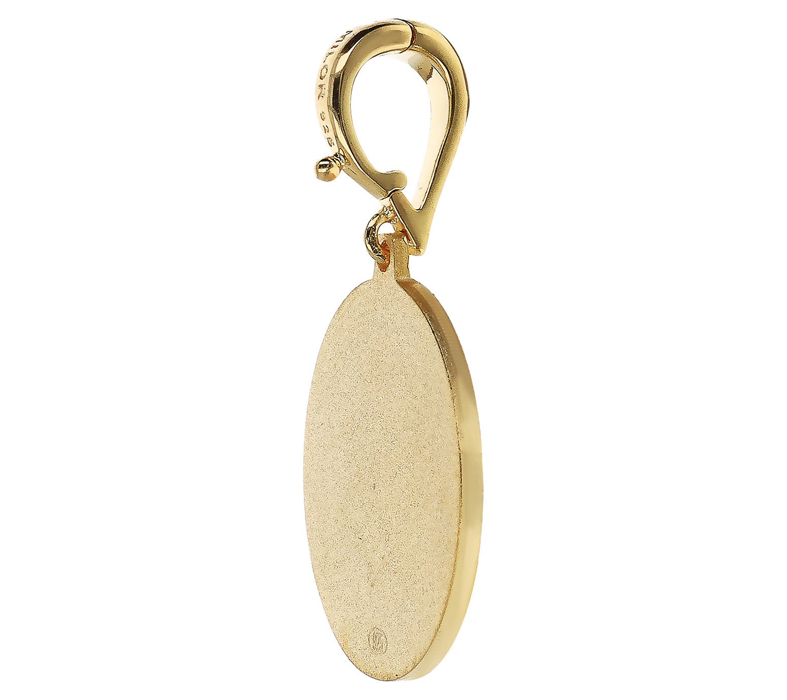 From the UltraFine Silver Collection, this 18K gold-plated 950 silver enhancer pendant features a religious design with an engraved border. The pendant showcases St. Anthony, St. Joseph, and St. Michael engraved with "Pray for Us" and St. Christopher engraved with "Protect Us." From UltraFine® 950 Silver Nickel-Free Jewelry.
