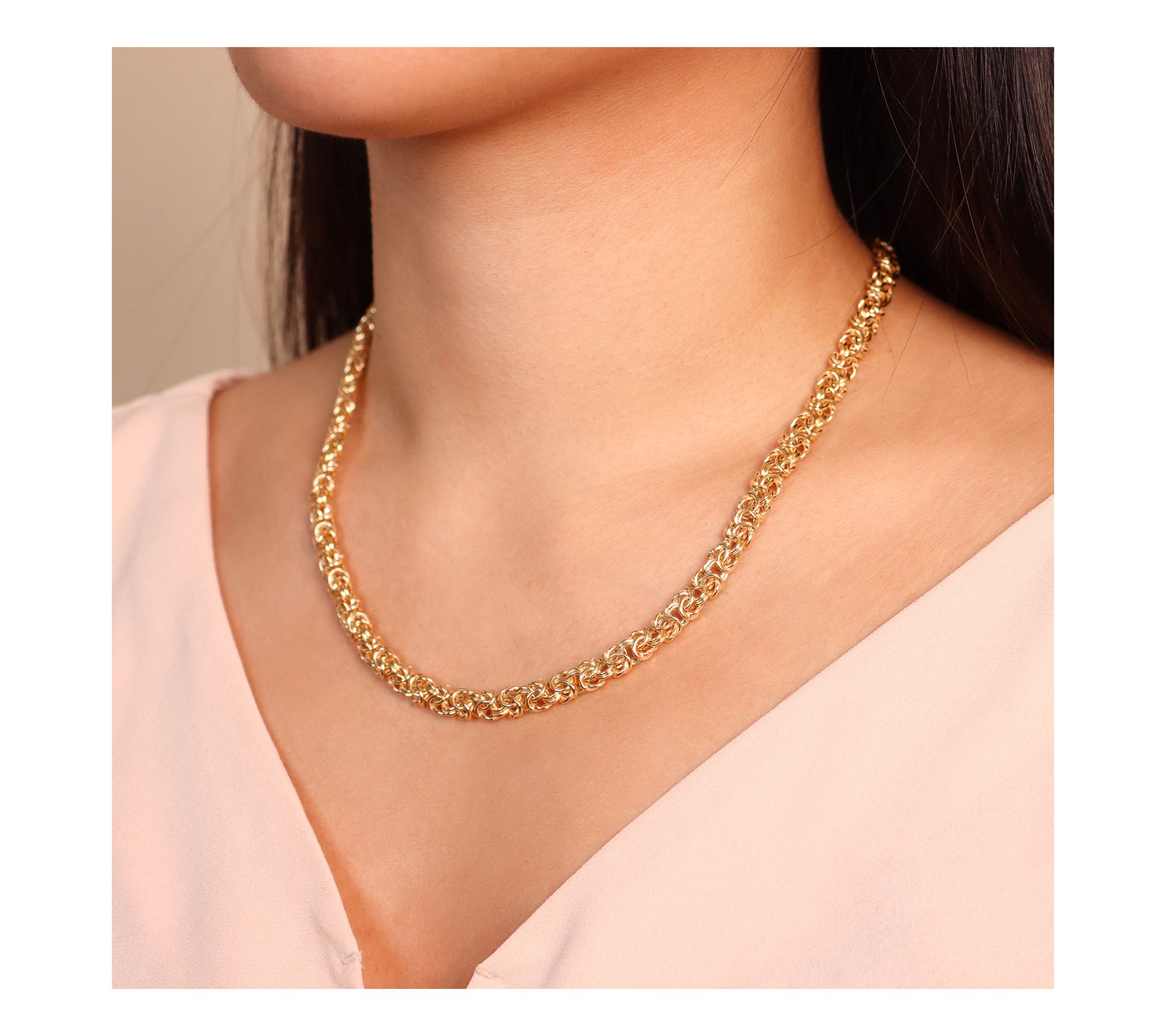 UltraFine Silver 18" Byzantine Necklace, 18K Gold Plated