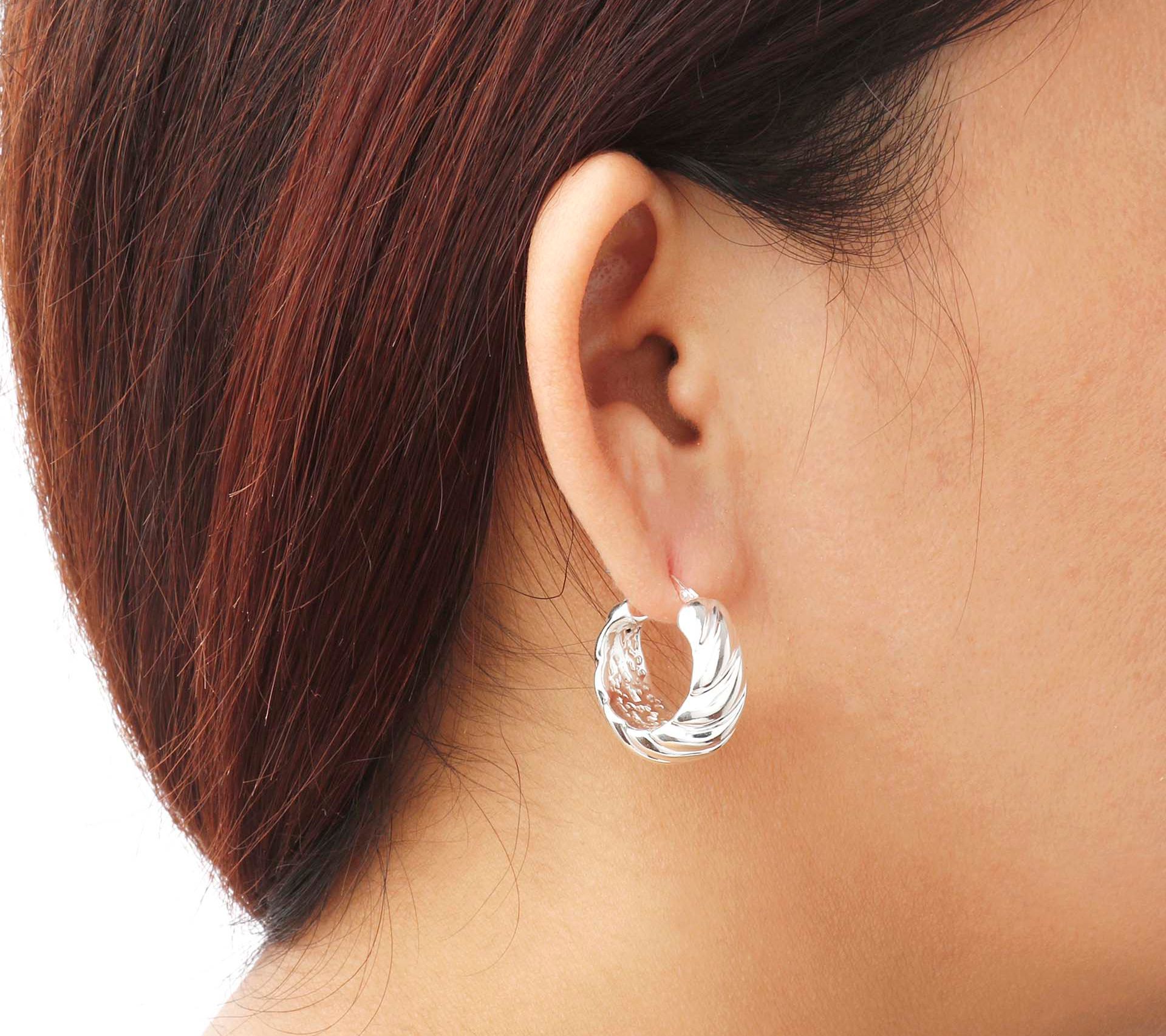 A classic style staple with contemporary curves, these perfectly polished hoop earrings showcase a swirl design that complements just about anything in your closet. From UltraFine® 950 Silver Nickel-Free Jewelry.