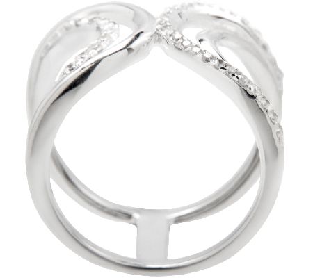 Enjoy the sparkle. Highly polished, this UltraFine 950 silver ring is sure to dazzle with clear crystals and polished curves that meet in the center of the open band. From UltraFine(R) 950 Silver Nickel-Free Jewelry.