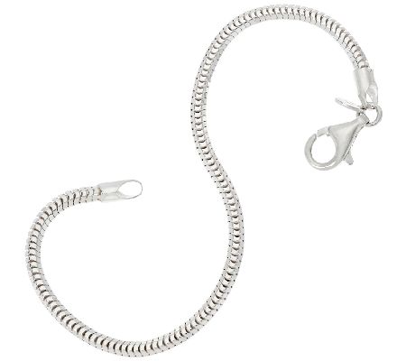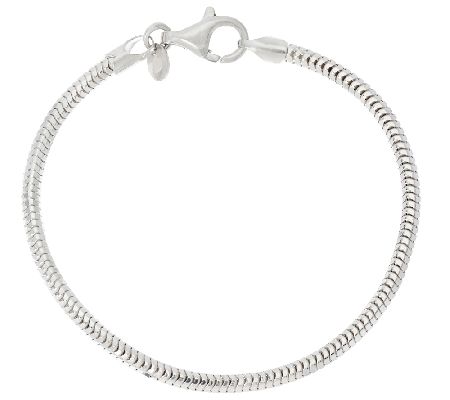 From the UltraFine Silver Collection comes this polished snake chain bracelet, crafted from 950 silver. The bracelet secures with s lobster claw clasp. Choice of sizes: 6-3/4"L, 7-1/4"L, or 8"L x 1/8"W. A technologically advanced silver alloy is used to produce UltraFine Silver products, making them more tarnish resistant and nickel free. GLW's = 6-3/4" - 5.0g; 7-1/4" - 5.5g; 8" - 6.0g. Made in Italy.