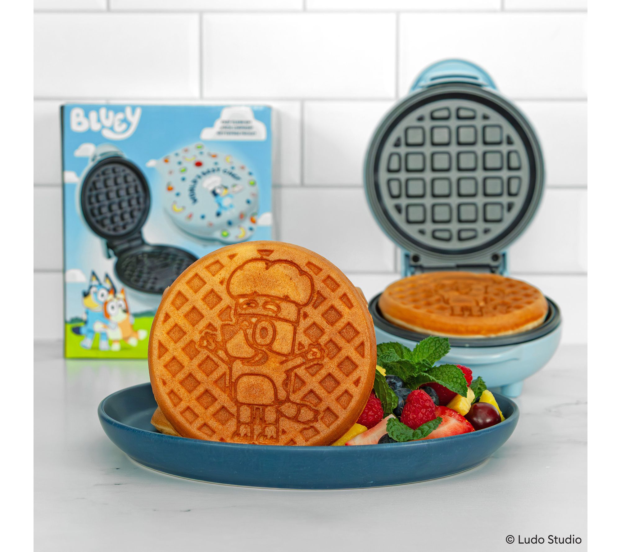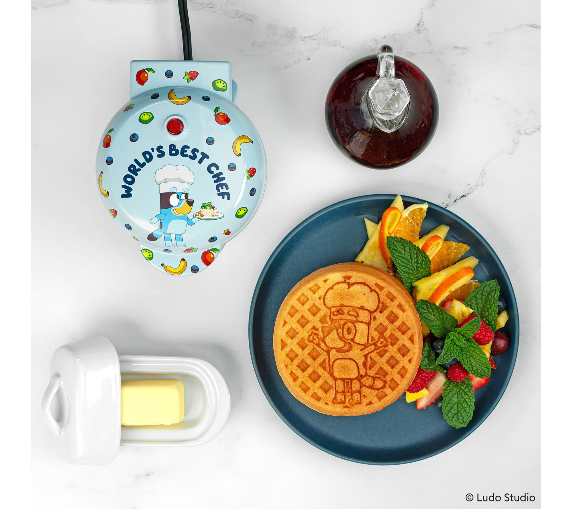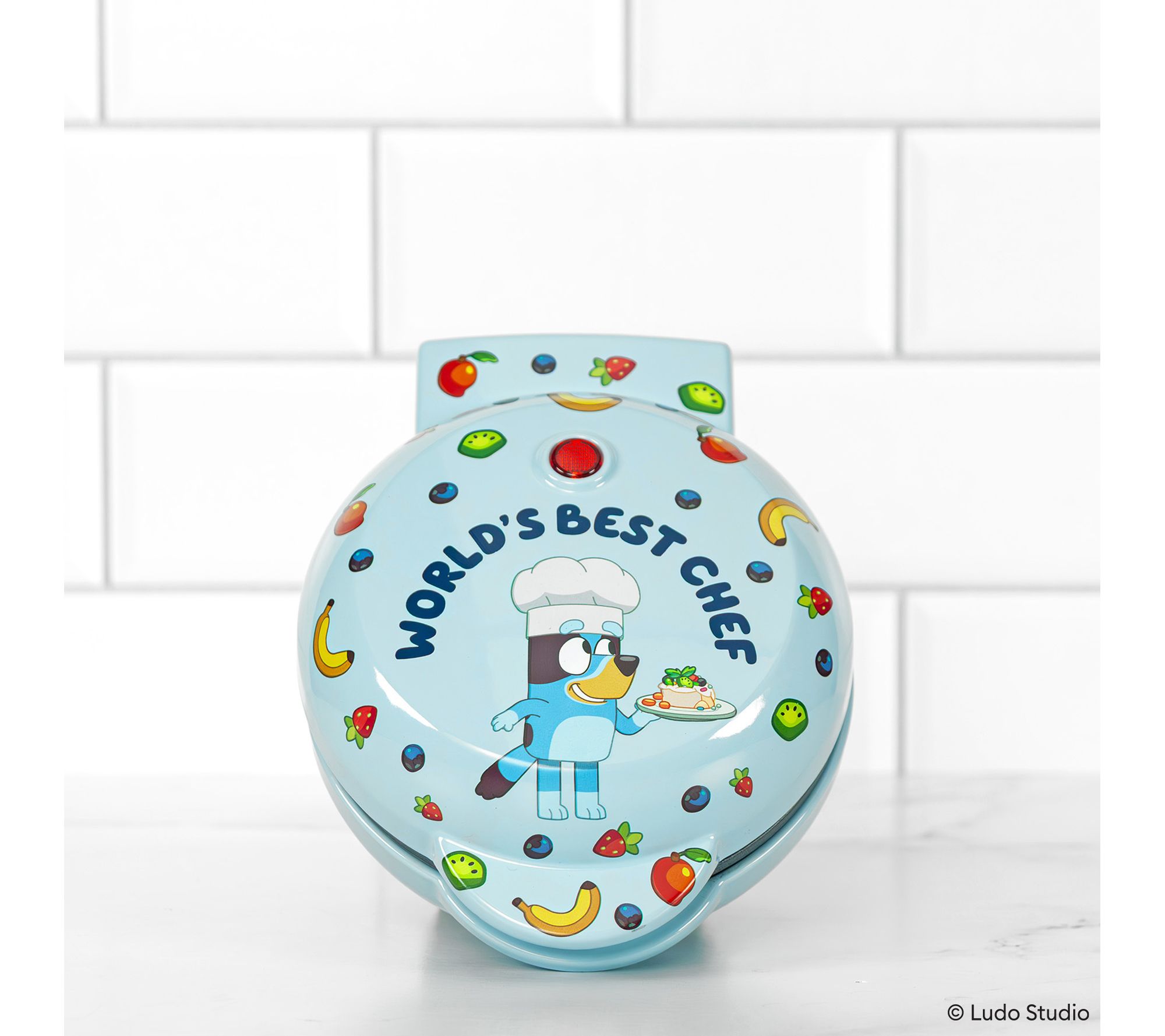 Brighten up breakfast and bring Bluey fun to the kitchen with this mini waffle maker, designed for fans big and small. The compact size fits easily on any countertop and creates waffles with a cheerful World's Best Chef motif, making mornings playful and memorable. Non-stick plates help cleanup take just seconds. From Uncanny Brands.