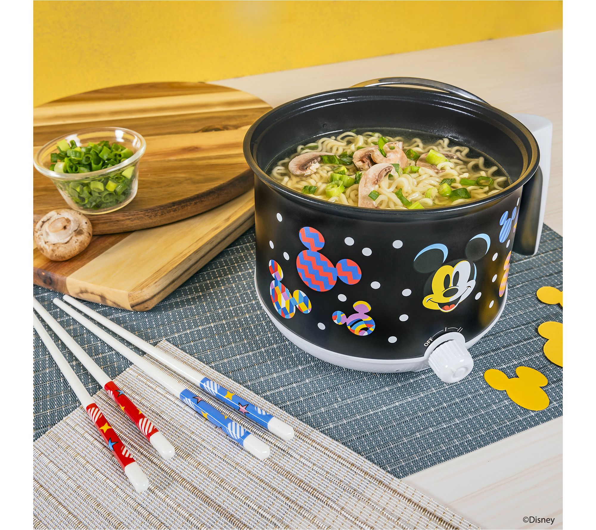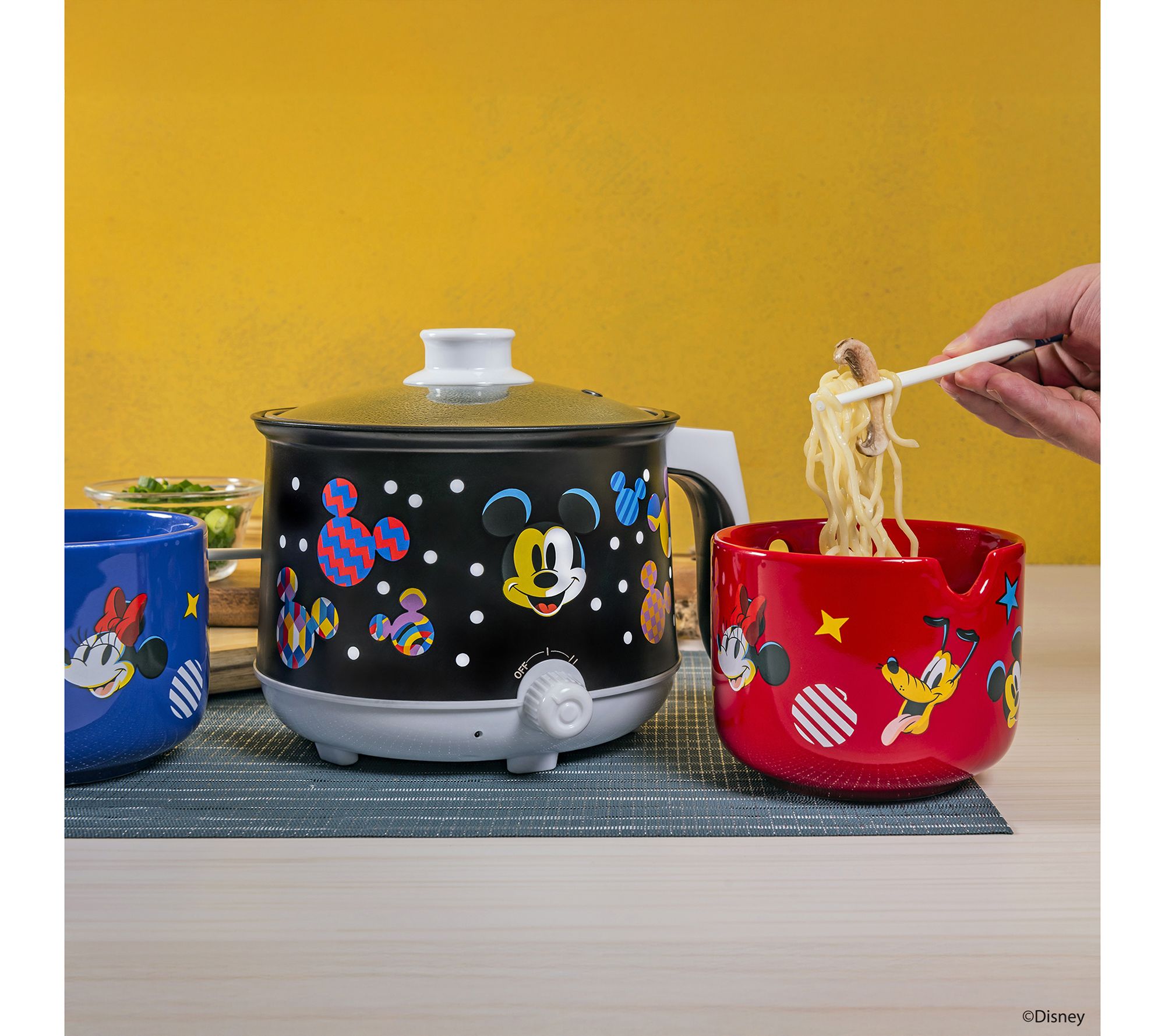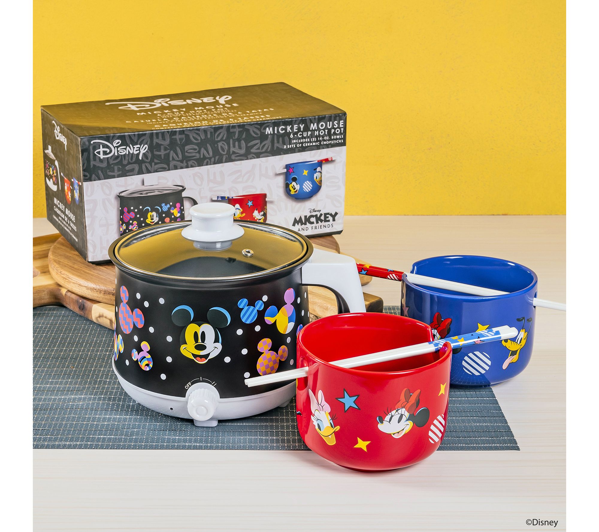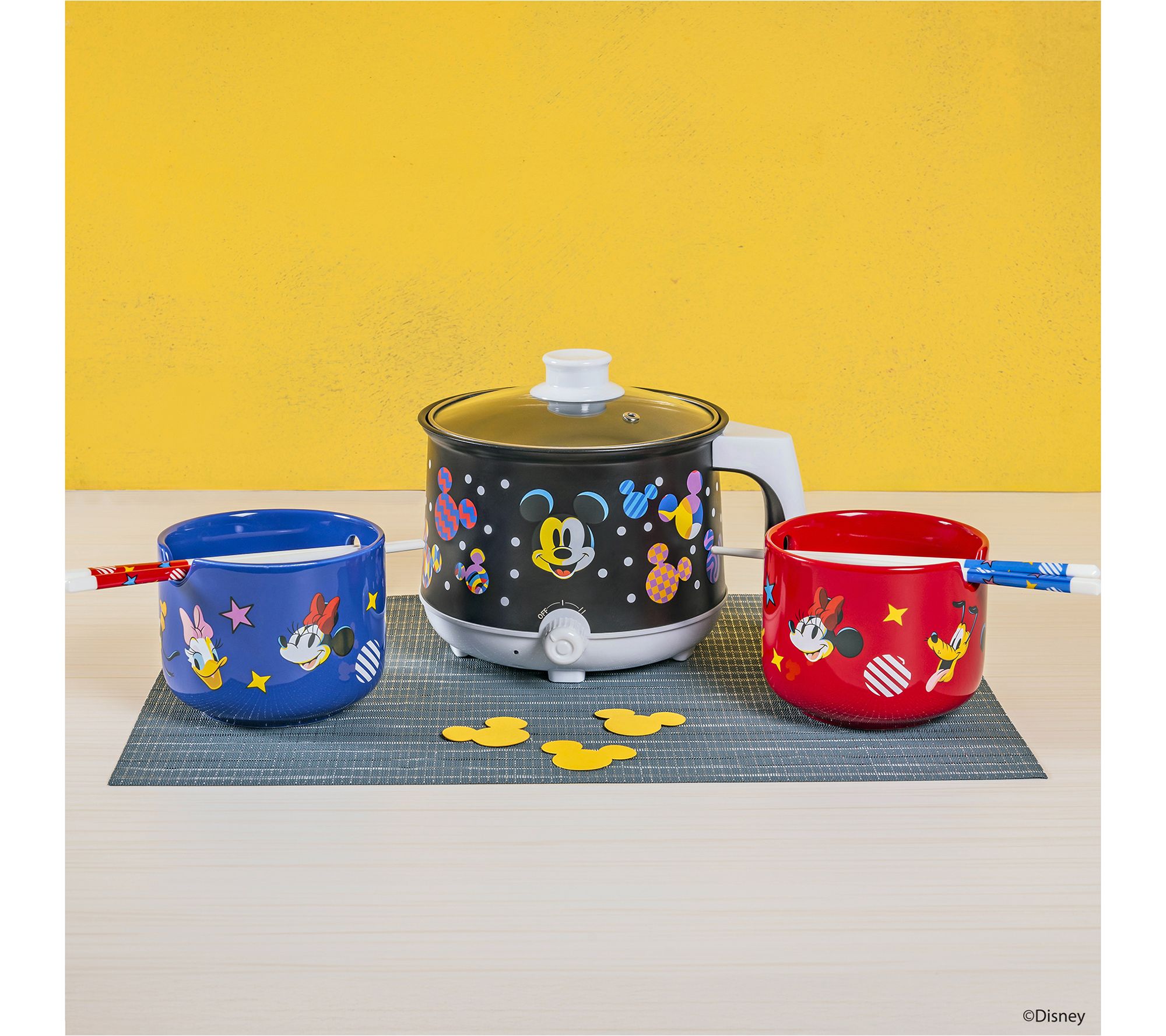 Make meal times magical with the Uncanny Brands Disney Mickey Mouse Hot Pot with Ramen Bowls. Enjoy the charm of Mickey Mouse as you cook and dine with this delightful set, which includes a hot pot, two ceramic bowls, and chopsticks. Whether it's ramen, stew, or soup, share fun and delicious meals with family and friends in style. From Uncanny Brands.