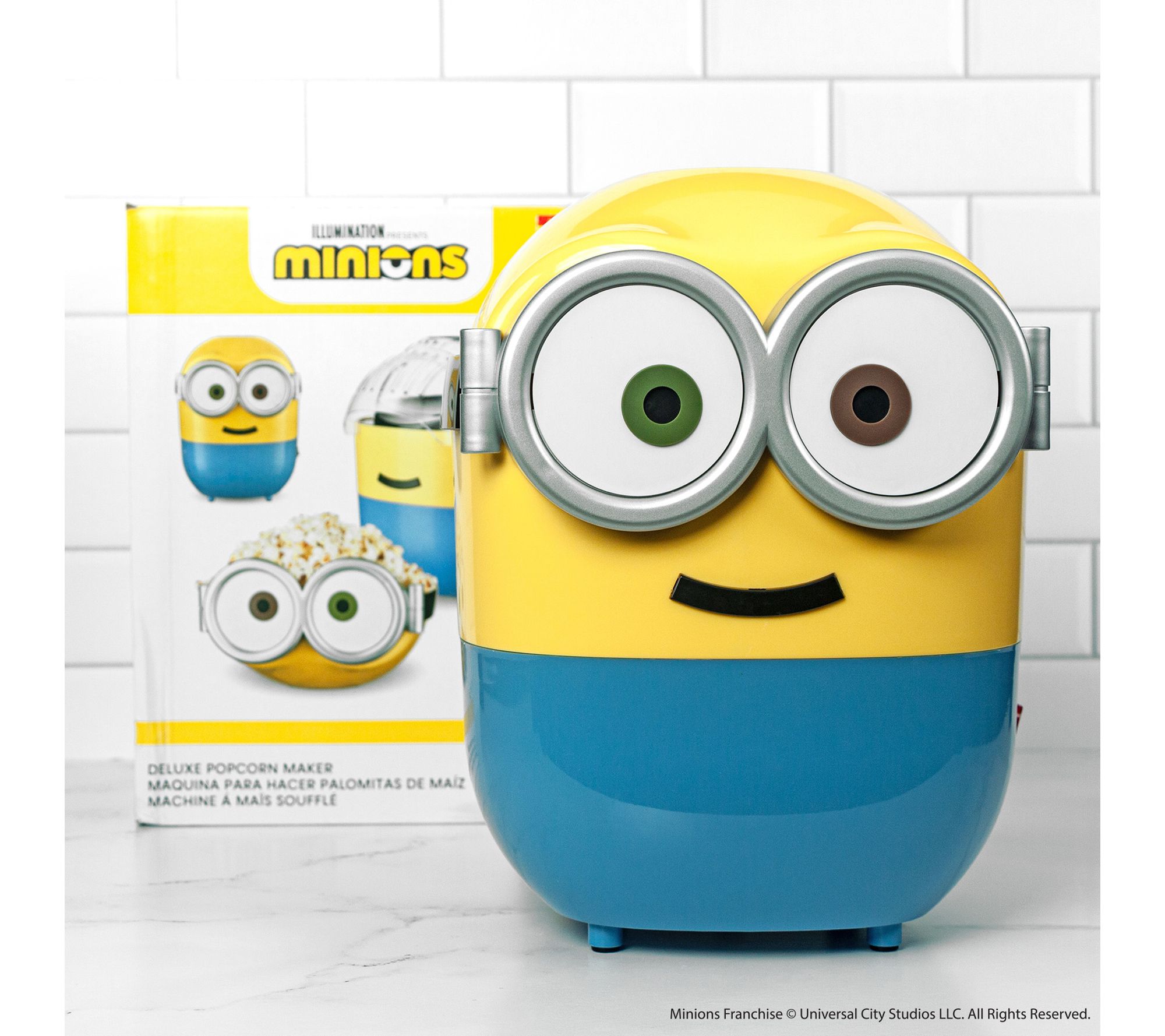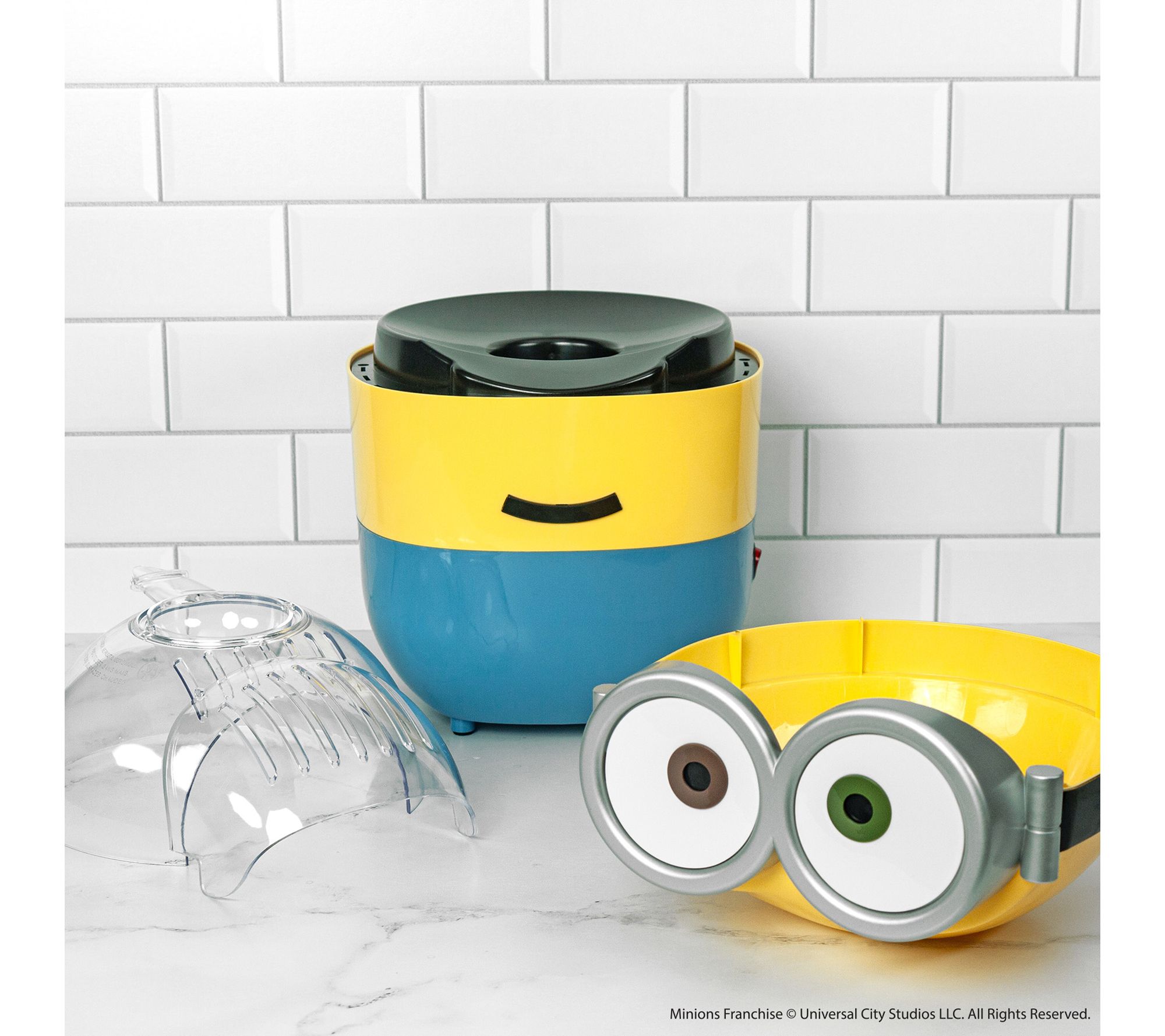 Movie nights take on a playful twist with this Minions popcorn maker, delivering freshly popped popcorn in minutes and adding fun to any gathering. The easy-to-use design lets you watch kernels pop through the transparent cover, while the top doubles as a serving bowl for effortless snacking. Let Bob bring laughter and delicious treats to every occasion. From Uncanny Brands.