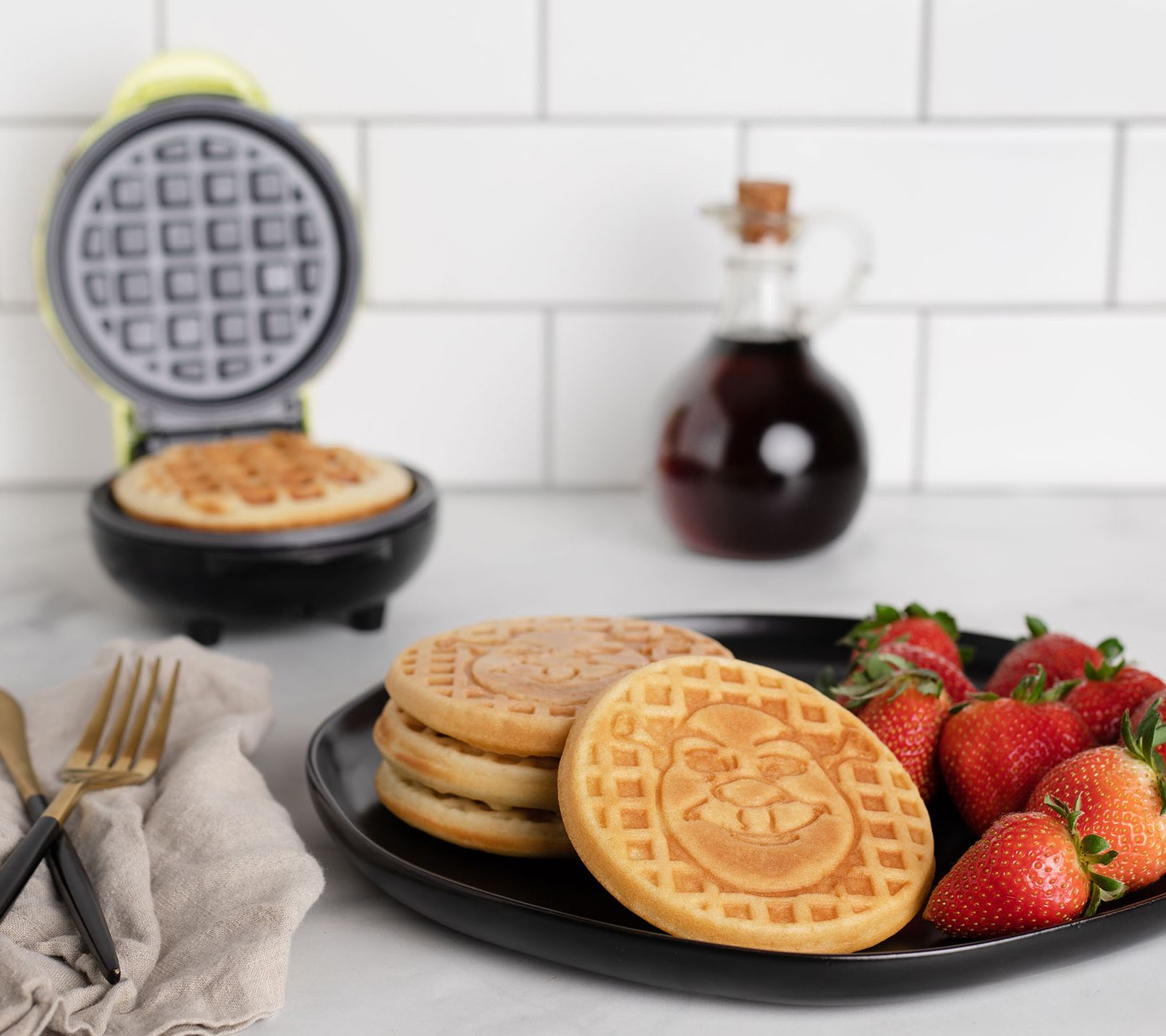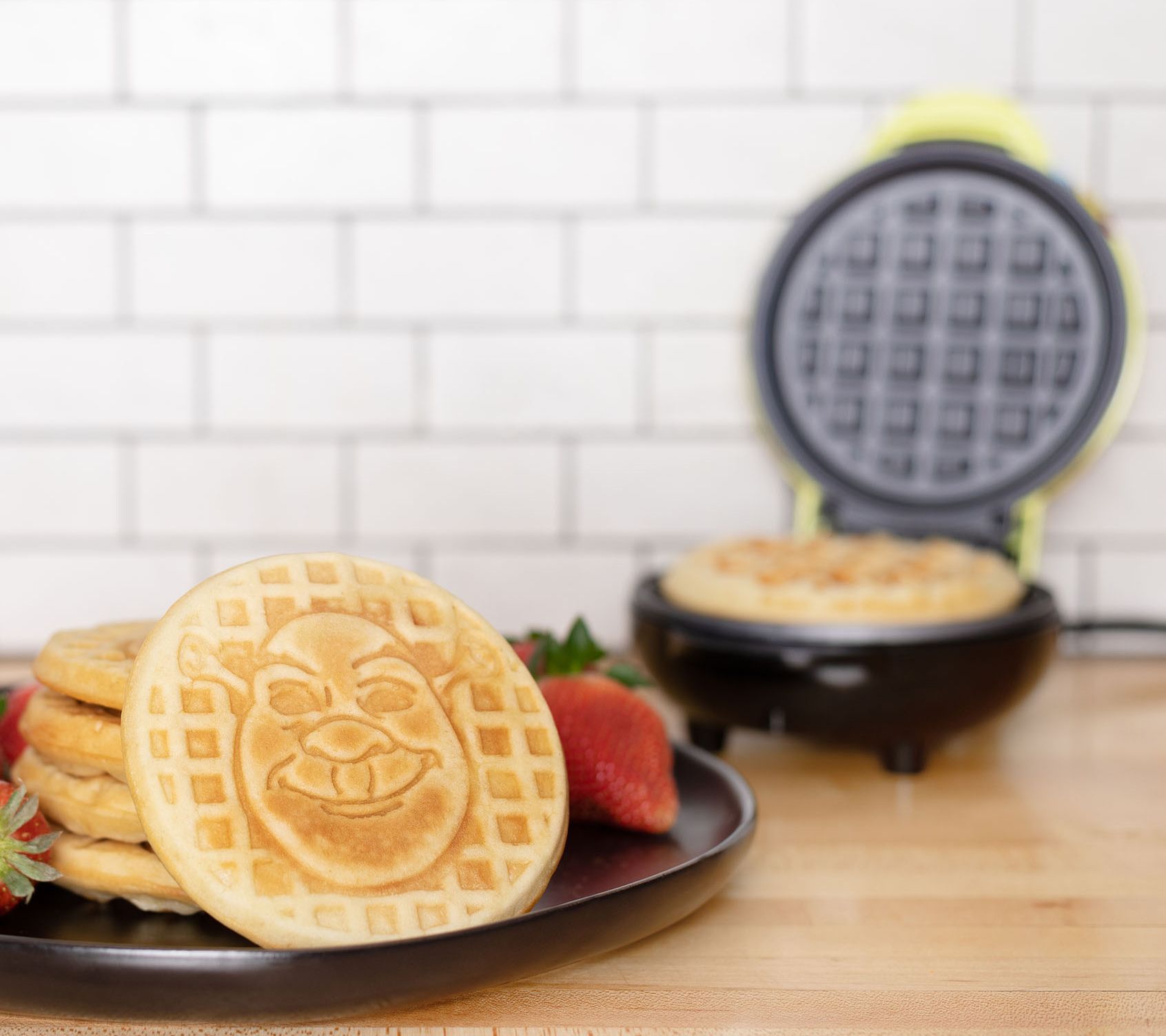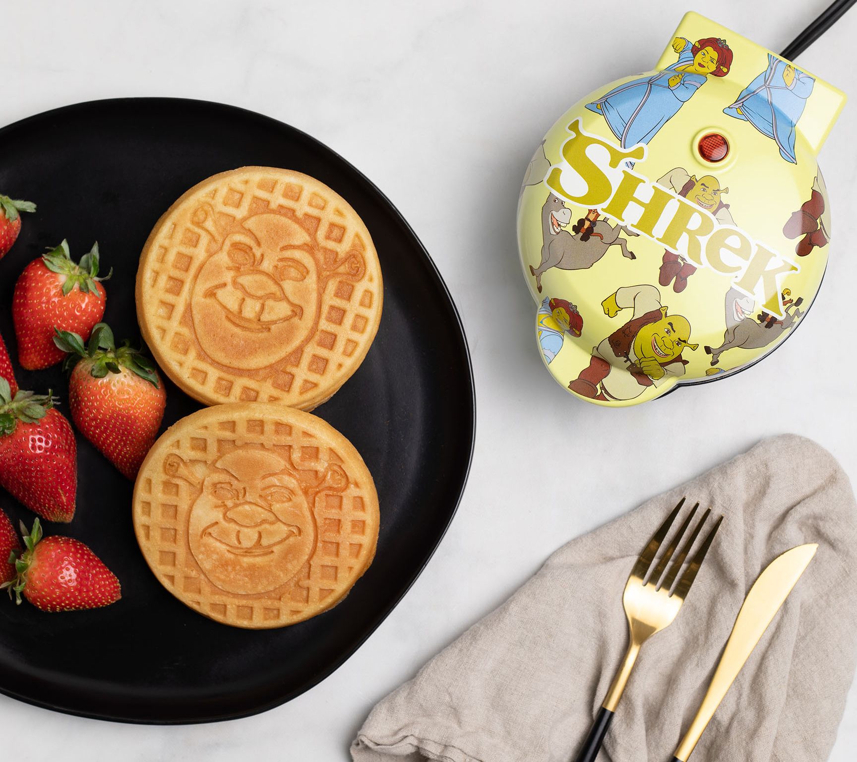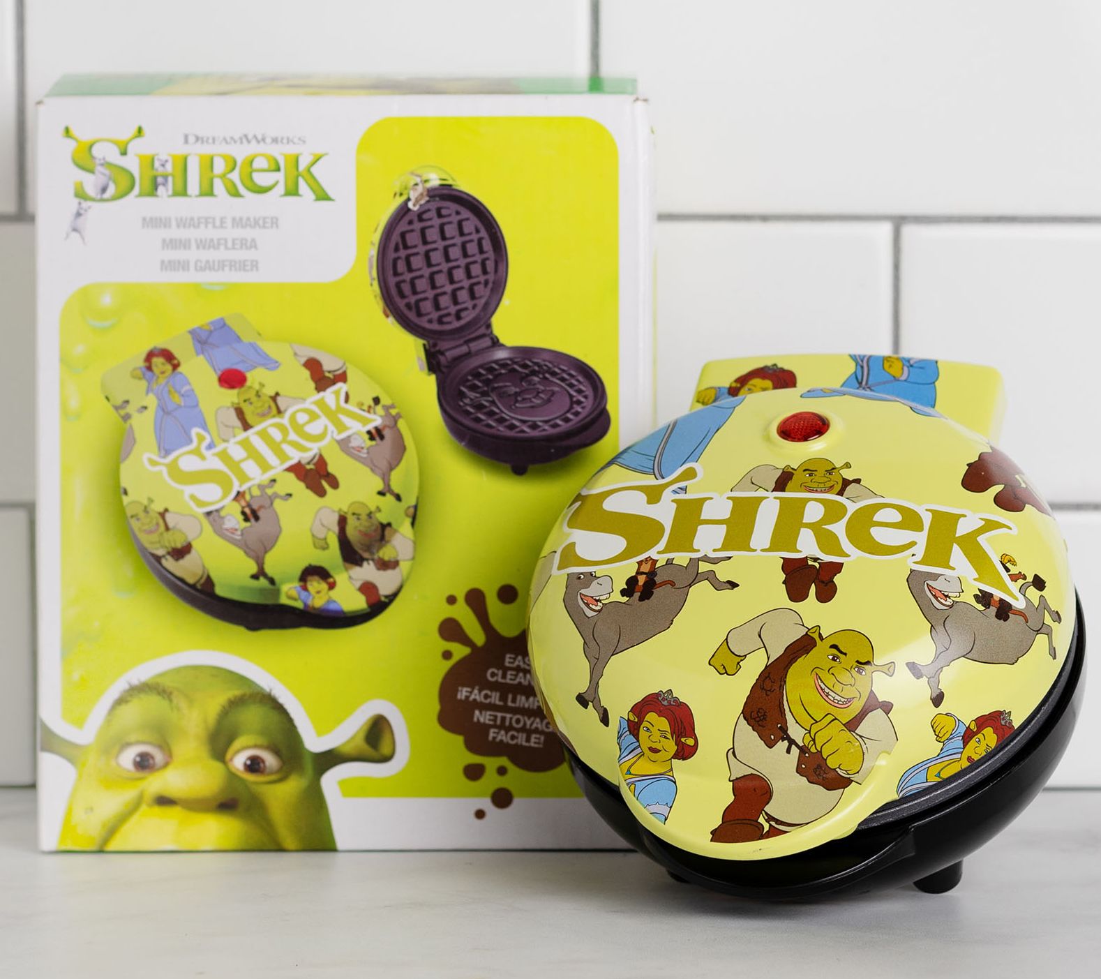 Enjoy a delicious breakfast with everyone's favorite green ogre when you have this mini-waffle maker, featuring fun graphics and nonstick plates for easy cleanup. From Uncanny Brands.