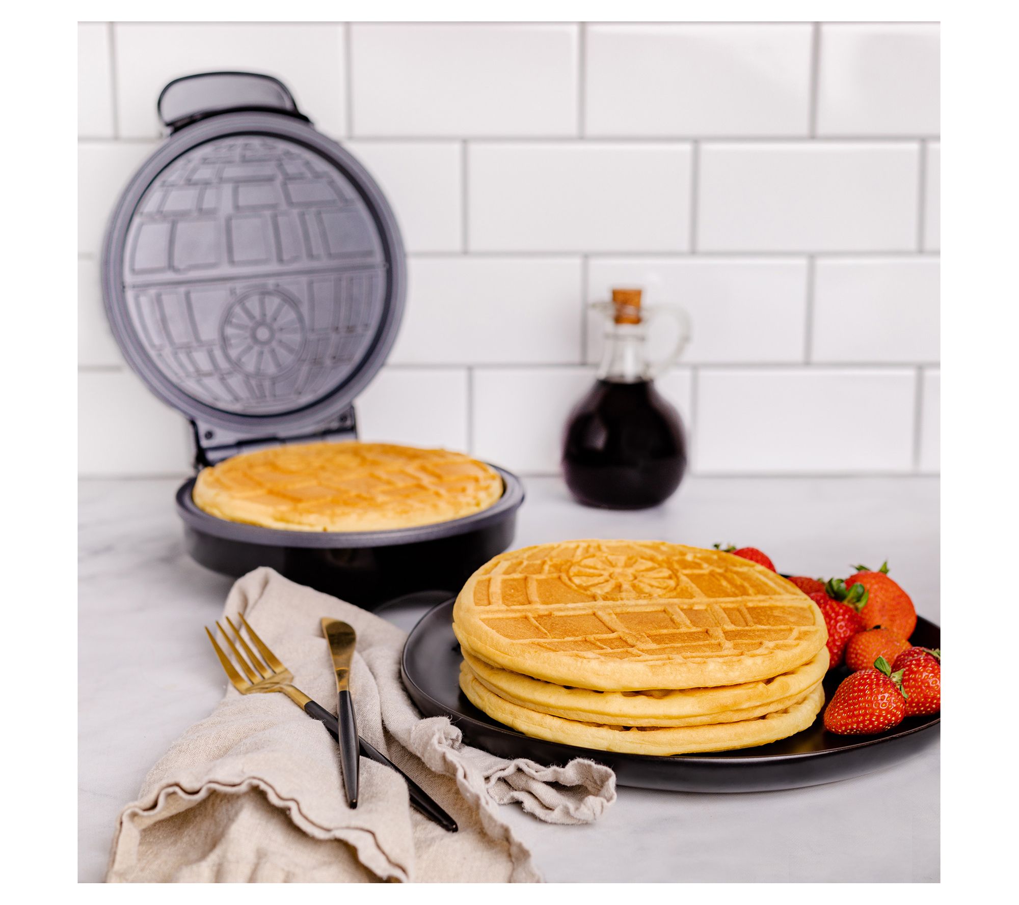 Transform your breakfast into a galactic feast with perfectly cooked Death Star waffles from this high-powered, expertly designed waffle maker. From Uncanny Brands.