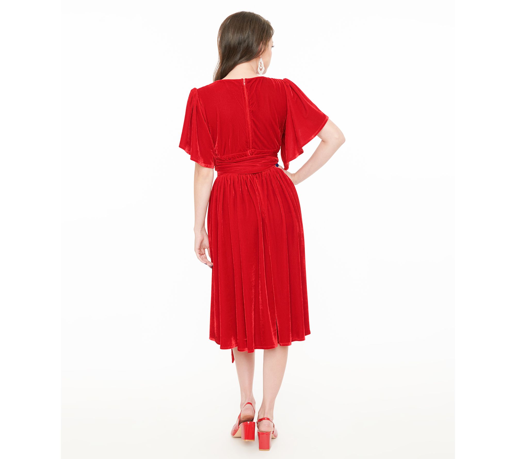 Unique Vintage 1940s Red Velvet Flutter SleeveSwing Dress